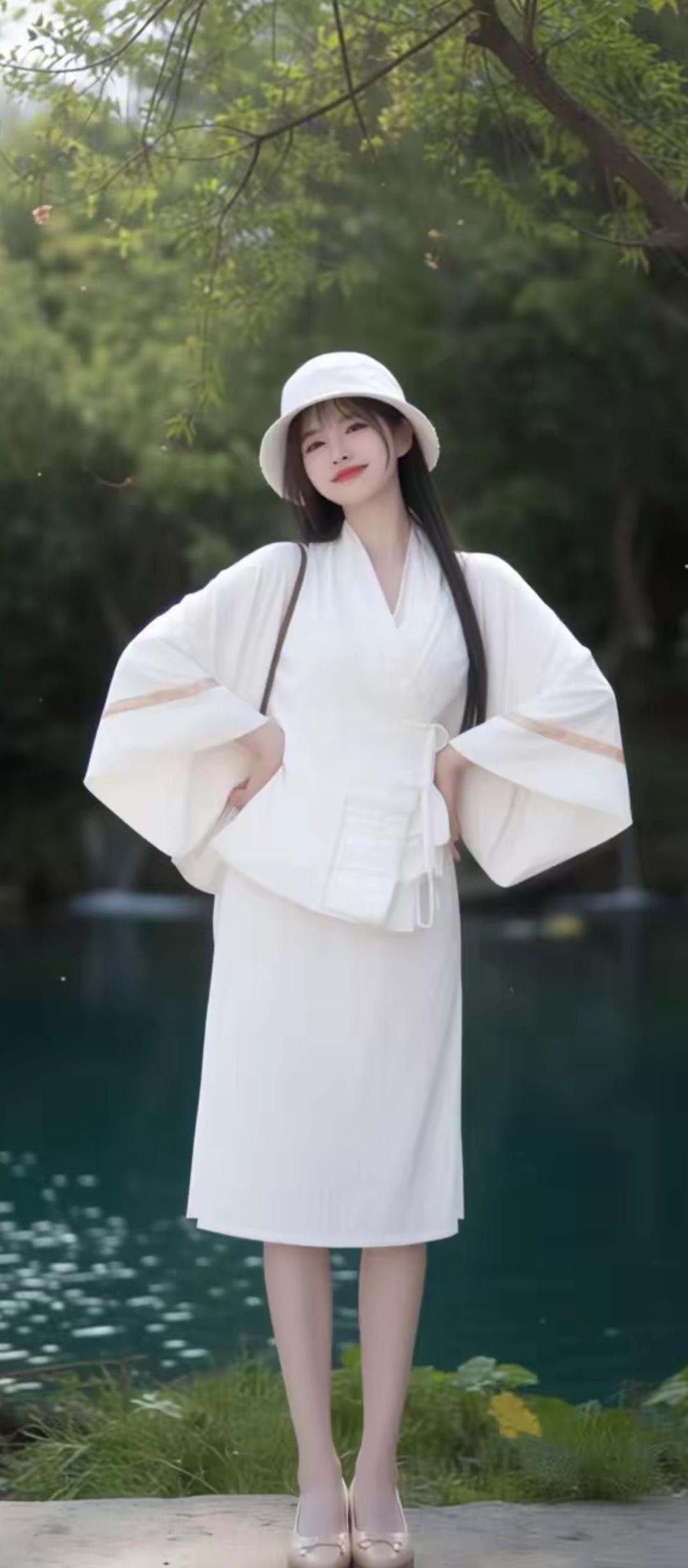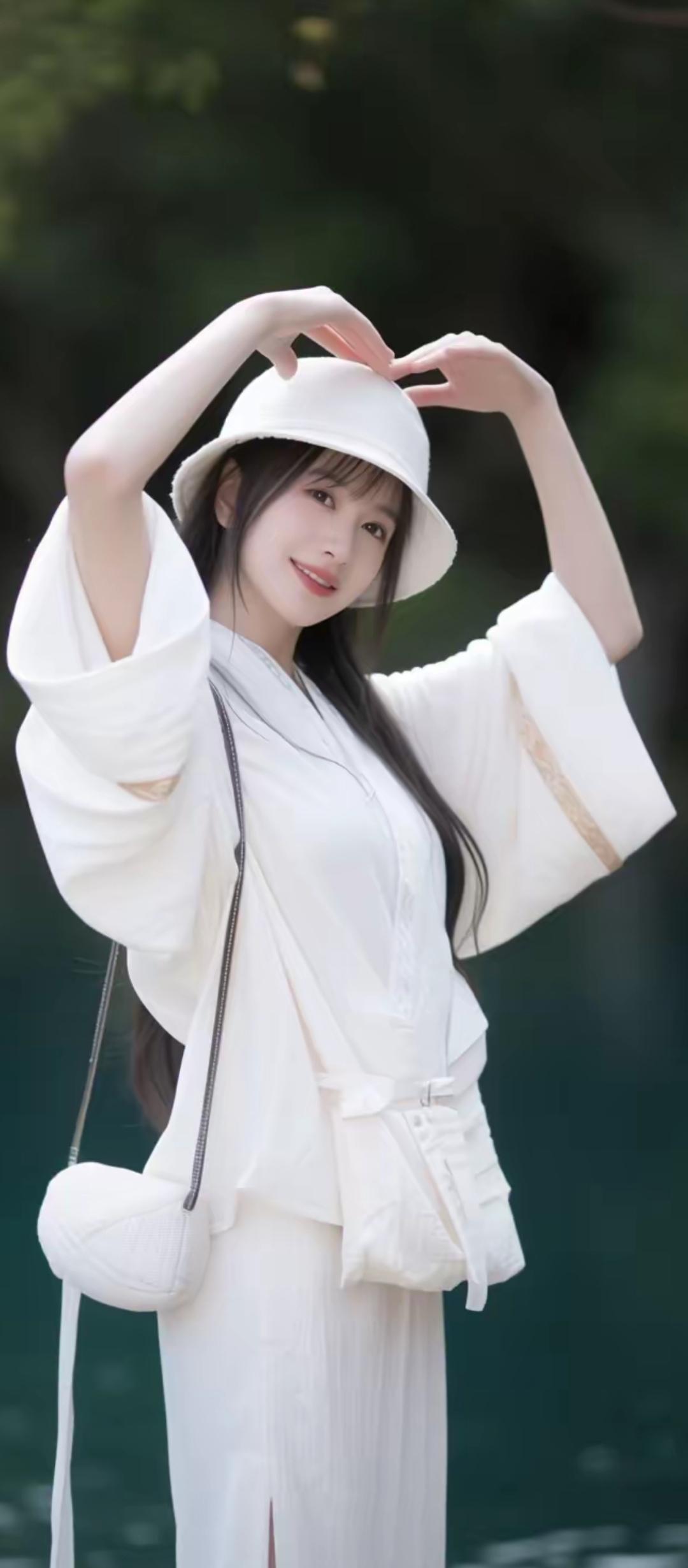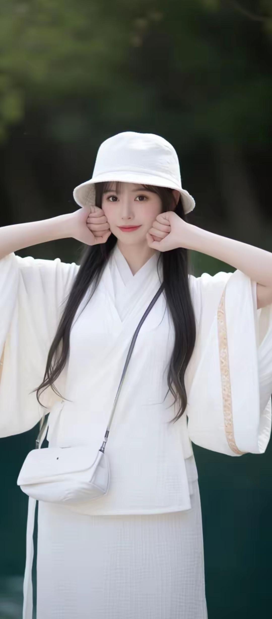 夏日清新穿搭,白色渔夫帽搭配简约白裙,甜美可爱!🌞💗
