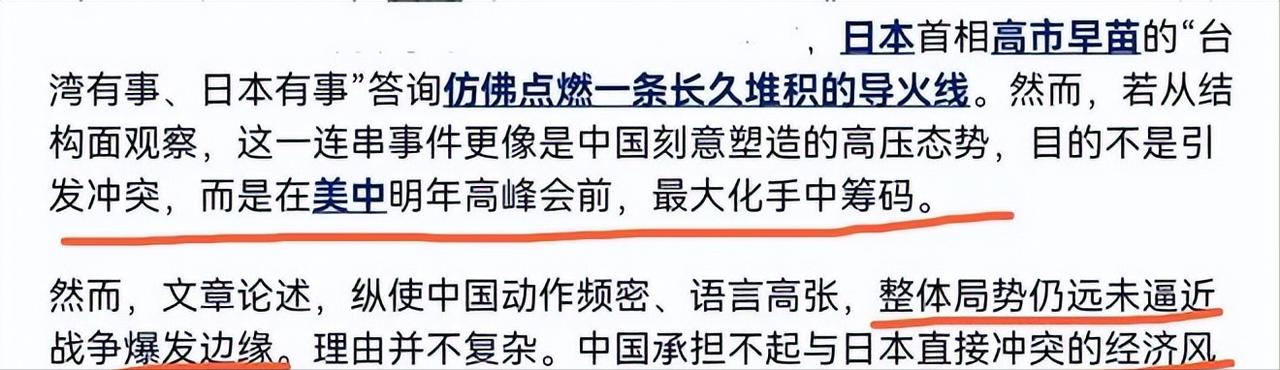 德媒声称,中国承担“不起”与日本直接冲突的经济风险,也承担“不起”与美日同盟正面对抗的战略后果,中国更像是通过“表演”,制造筹码。12月22日,德国之声刊文表示,日本首相高市早苗的“台湾有事、日本有事”答询,仿佛点燃了长久堆积的火线。然而在他们眼中,这场紧张局势是中国刻意塑造出来的,并非真要冲突,而是为了在明年美中高峰会前,攒足手上的筹码。 德媒的逻辑看起来有板有眼,实则是倒果为因,连基本的事实顺序和数据常识都没理清,颇有种为了自洽逻辑,强行给剧情定人设的荒诞感,先说说德媒最看重的“经济风险”论调,仿佛中国经济是玻璃做的,一碰就碎,连应对外部冲击的韧性都不存在。 可事实偏不配合这种臆想,海关总署的数据显示,2025年前11个月中国货物贸易进出口总值已达41.21万亿元,同比增长3.6%,创下历史同期新高,其中对东盟出口增长8.5%,对欧盟出口也保持5.4%的增长态势。 而且,中国对美出口占GDP的比例早在2024年就降到了2.78%,这个数值在全球主要经济体里处于中等偏下水平,远低于墨西哥、越南等高度绑定美国市场的国家,甚至比德国自身对美出口的GDP占比还低。 德媒口口声声说中国“承担不起”冲突的经济代价,却选择性忽略中国早已通过贸易多元化降低单一市场依赖的事实,也看不见世界银行、IMF等国际机构纷纷上调中国经济增速预期,认定中国经济能继续为全球增长贡献30%左右的份额,这种只挑自己想看的数据、无视全局的分析方式,很难让人相信是客观解读,倒更像为了印证预设结论的刻意筛选。 再看所谓“承担不起与美日同盟正面对抗的战略后果”,这更是把因果关系彻底搞反了,德媒盯着中国的应对动作大做文章,却对日本的挑衅行为视而不见。 要知道,是日本首相高市早苗多次公开叫嚣“台湾有事、日本有事”,还把这话和日本的“集体自卫权”绑定,打破了长期以来的战略模糊;也是日本在距离台湾仅110公里的与那国岛持续推进军事部署,十年间从设立监视部队、部署电子战部队,到如今要补齐中程导弹的“火力摧毁”环节,一步步把普通小岛打造成面向台海的前沿军事节点。 中国的回应不过是对这种步步紧逼的正常反应,甚至还特意用了法理层面的精准应对——援引《联合国宪章》的“敌国条款”,把日本的挑衅行为书面归档给联合国秘书长,用中日双语清晰传递红线信号。 这种“法理先行、证据确凿”的操作,在德媒眼里居然成了“表演”,不知道是没看懂国际法的基本规则,还是故意忽略谁才是局势的始作俑者,更有意思的是德媒似乎对美日同盟的“可靠性”有种迷之迷信,却忘了美国在国际冲突中向来优先考虑自身利益,面对中国的区域拒止能力,美军在第二岛链内的行动本就充满风险,真到关键时刻能否为日本兜底,恐怕连日本自己都没底。 说到底,德媒的这种解读更像是一种“信息茧房”里的臆想,既没有扎实的数据支撑,也没有对事实因果的基本尊重,在复杂的地区安全局势中,放弃对事实的客观梳理,反而用预设的偏见给一方贴“表演”的标签,不仅无法反映真实情况,还可能误导国际舆论,加剧地区紧张氛围。 其实,要搞懂局势很简单,只要把目光从中国的“姿态”移开,看看是谁在台海周边部署导弹,是谁在打破战略模糊挑衅红线,答案就一目了然,对于国际社会而言,真正该警惕的不是所谓的“中国表演”,而是那些刻意制造紧张、触碰历史红线的行为,只有尊重事实、恪守国际法