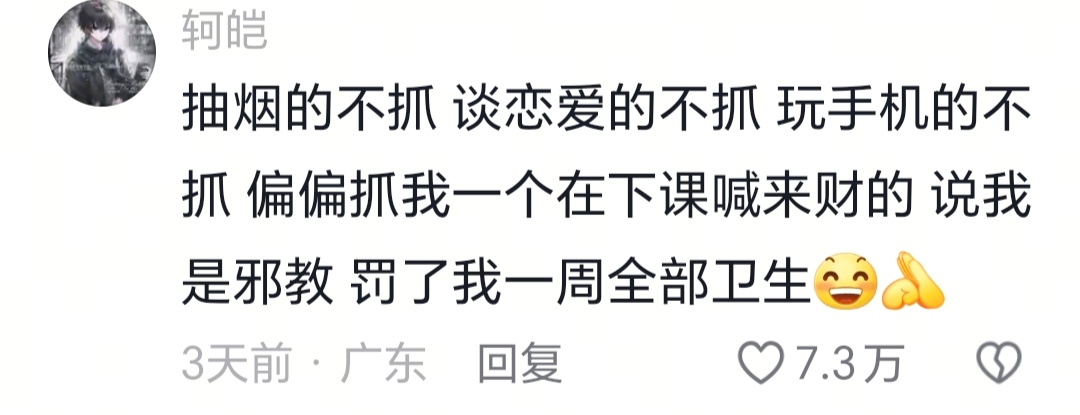 有一次在宿舍打喷嚏,宿管说我玩摔炮