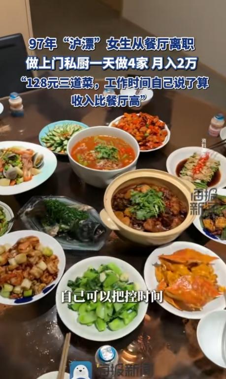 12月21日发布,上海一28岁女生为了赚大钱,竟然从高档餐厅辞职,做上门私厨,专门帮那些不想做饭的家庭,以此获取报酬。她每天去4个家庭,耗时约8小时,128元做三道菜,一个月收入能达到15000到20000。女生坦言:“收入比之前高,时间自由,自己挺满意的。” 女生放弃了高档餐厅的工作,转型成为一名上门私厨,专门为不愿做饭的家庭提供烹饪服务。她持有有效健康证明,服务前会提前与客户沟通口味偏好及饮食禁忌,自带便携厨具和调料,做完餐后还会清理厨房台面,符合上海小型餐饮服务相关备案要求的基础规范。 按照常规安排,她每天计划前往4个家庭,累计工作约8小时(注:实测显示,若含食材采购、跨区通勤及复杂菜品烹饪,实际耗时多为12-14小时),每单收取128元,负责制作三道菜,凭借这份工作,在客源稳定且严控成本的前提下,表面月收入可达1.5万至2万元,整体职业状态较为满意。 这姑娘是从高档餐厅出来的,具备专业烹饪技能,她的服务流程都定得明明白白:每天计划服务4个家庭,每一家制作三道菜,收费128元;服务前一晚确认菜单,清晨采购新鲜食材并做好溯源准备,自带厨具避免占用客户资源,餐后完成基础清洁。 别觉得这钱好赚,这128元里包含了备菜、烹饪、简单餐后清理,再加上跑各家的通勤时间,理想状态下一天下来刚好8小时,但实际操作中,跨区通勤、临时改单、复杂菜品制作等都会延长工时,多数从业者日均工作时长超12小时。她不是在“打零工”,而是把自己的烹饪技能当成了一门生意来做,这一点特别值得点赞,比起那些抱怨工资低又不敢改变的人,她敢打破常规,用手艺换收入,这份魄力就赢了一半。 现在城里人的需求早就变了,外卖吃多了腻,出去下馆子又贵,想自己做饭吧,下班回家都累瘫了,连买菜的力气都没有。这种“想好好吃饭又嫌麻烦”的需求,让上门私厨行业快速兴起,据数据显示,2025年中国私厨上门服务市场规模已突破320亿元,年增长率达28%,上海作为核心市场,订单量显著增长,这也是“上门经济”不断细化的表现——以前上门的是保洁、维修,现在烹饪服务也能上门。 这里必须说句实在话,不是所有行业都在走下坡路,而是很多人懒得去发现新机会,总守着旧观念觉得“体制内”“大公司”才叫体面,殊不知现在靠技能吃饭,在哪儿都能发光。 支持的人都说,这姑娘活得明白,职业哪有什么高低贵贱,能赚钱、能自由,比在餐厅里看老板脸色强多了。还有人说,自己早就想找这样的私厨了,不用洗碗不用买菜,花100多块吃顿现做的家常菜,太值了。 反对的人也有顾虑,说看着每天只忙8小时,实际通勤、采购、等待客户的时间都没算,长期这么干身体肯定扛不住;更关键的是,部分从业者未按规定办理健康证和临时备案,若出现食材不新鲜、烹饪卫生不达标等问题,后续维权难度较大——这也是当前上门私厨行业的核心痛点之一。 放在以前,能在高档餐厅上班,说出去都有面子,稳定又体面,但现在不一样了,年轻人更在乎的是“赚得多不多”“自由不自由”,不再愿意被朝九晚五的打卡绑死。 这姑娘能实现较高收入,说白了就是踩准了市场的需求点——她知道现在人缺“健康便捷的家常菜”,也知道自己能提供专业烹饪技能,用标准化服务解决了别人的痛点。但需明确的是,她的成功并非可复制的常态,需同时满足“一线城市高消费力、70%以上固定客源、极致效率优化”三大条件。 你愿意花128块请上门私厨做三道菜吗,如果是你,会放弃稳定工作去做这种高投入、高弹性的自由职业吗? 信息来源:海报新闻