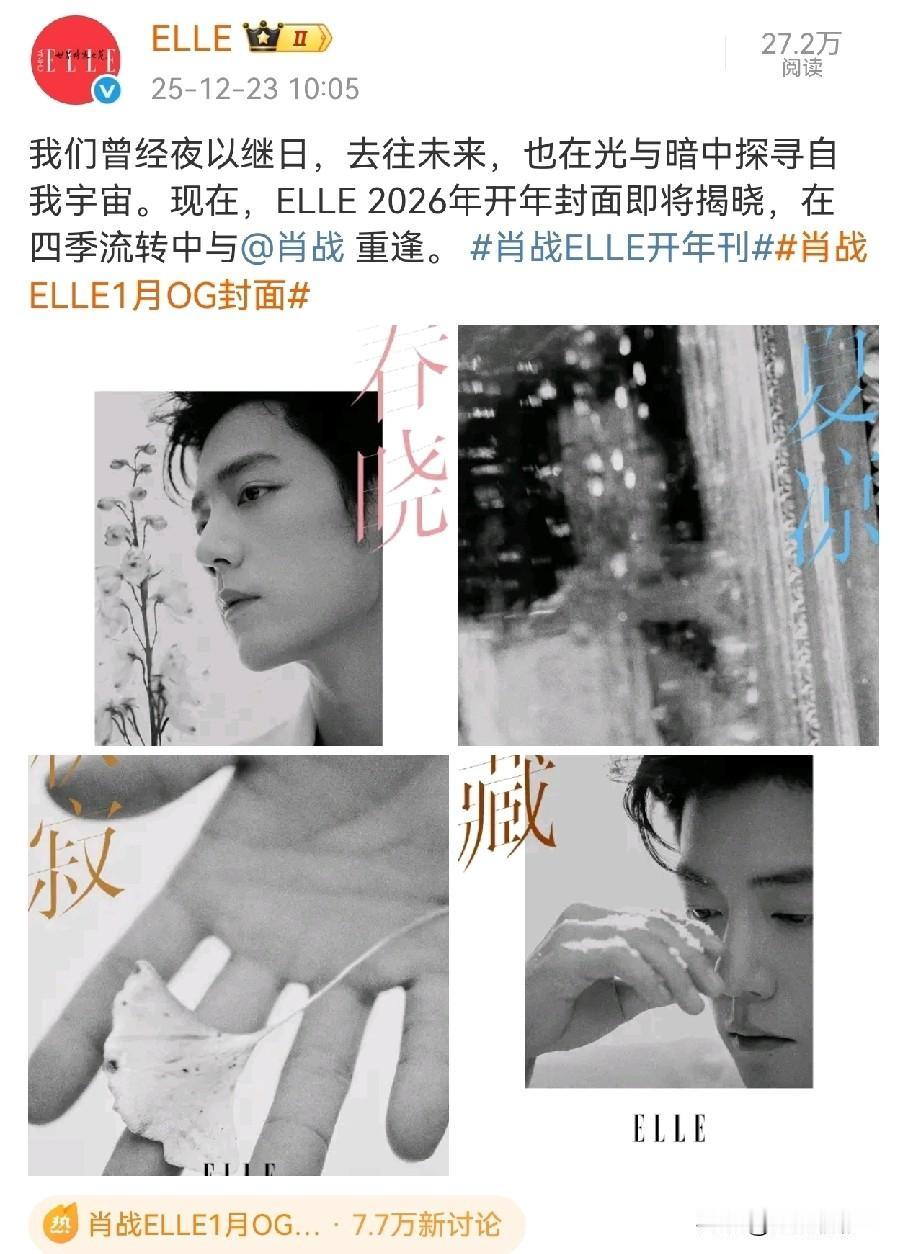肖战ELLE开年刊来了,单人单封 ,开年大刊,时尚界和业内已经默认能请来肖战拍杂志,就该给最顶级的待遇,这就是口碑。