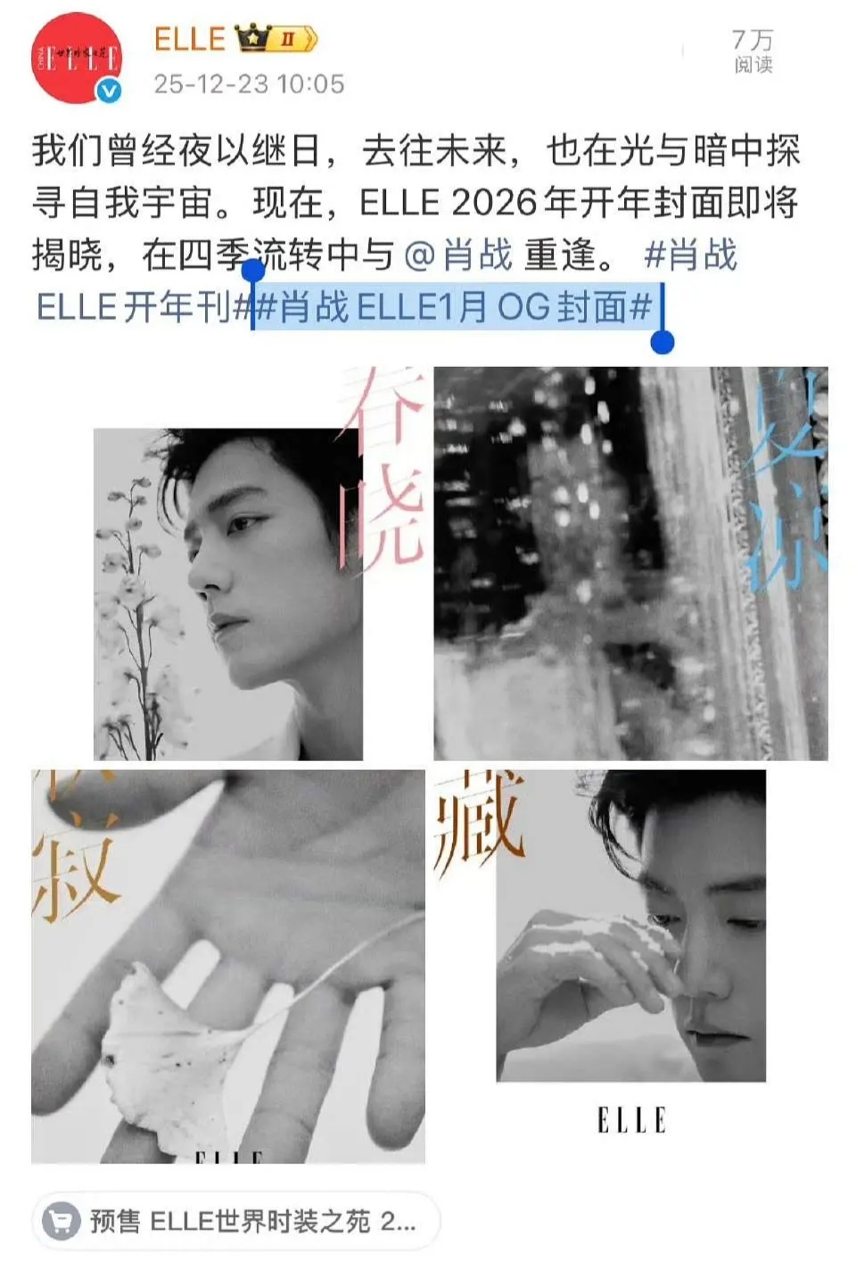 科普一下,肖战ELLE 年刊OG封面含金量。在时尚杂志领域,OG是指封面仅有一个人物强调单人独抗整期封面,代表对艺人咖位和时尚价值的最高认可。ELLE已经几年没有过OG封面了,请到肖战待遇和诚意必须拉满👍👍👍