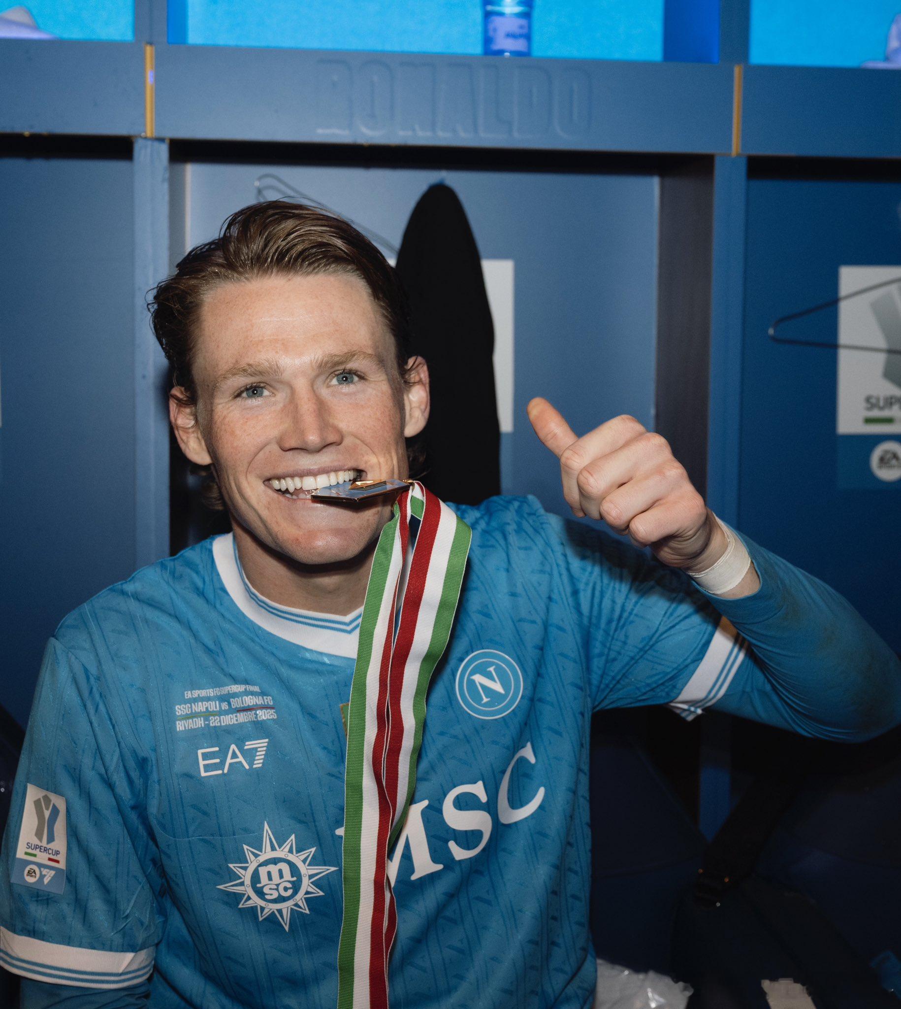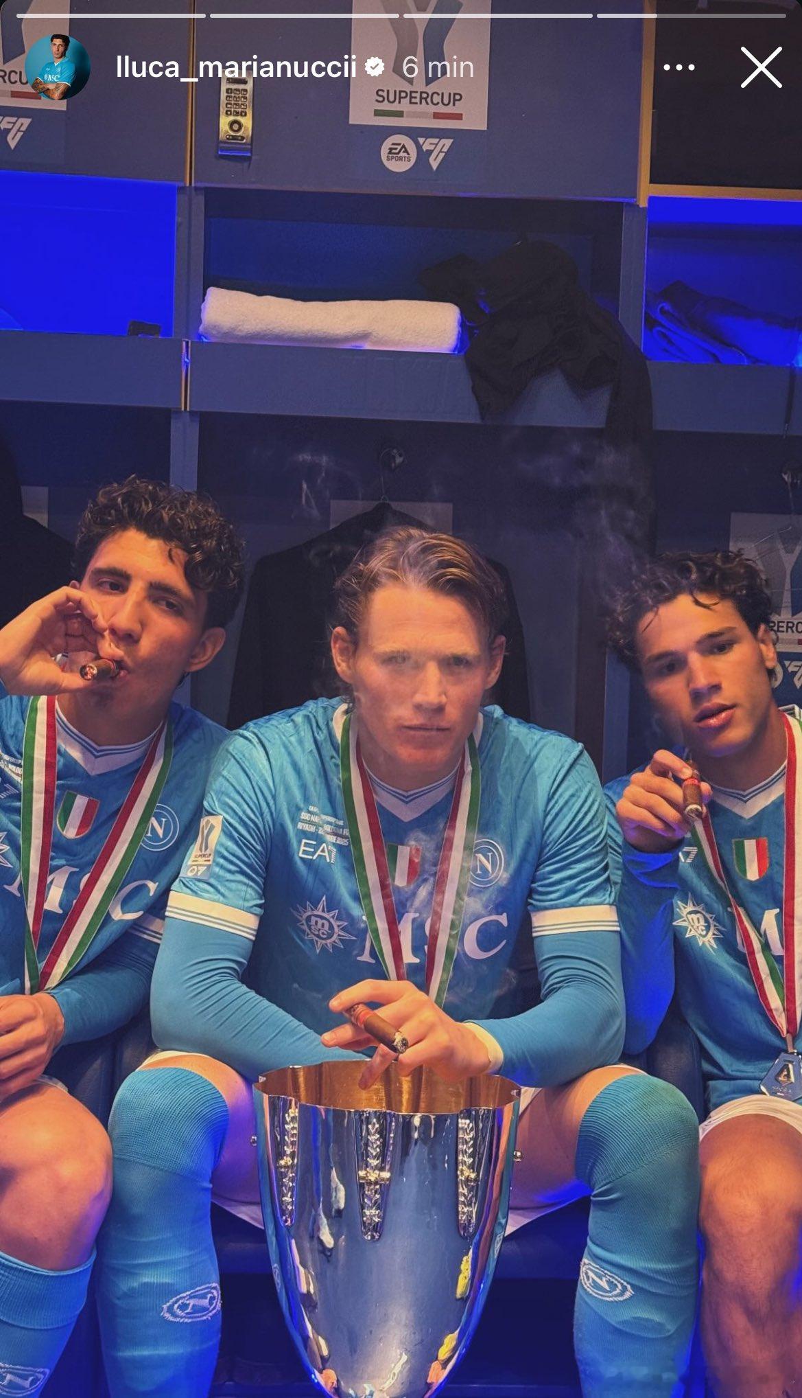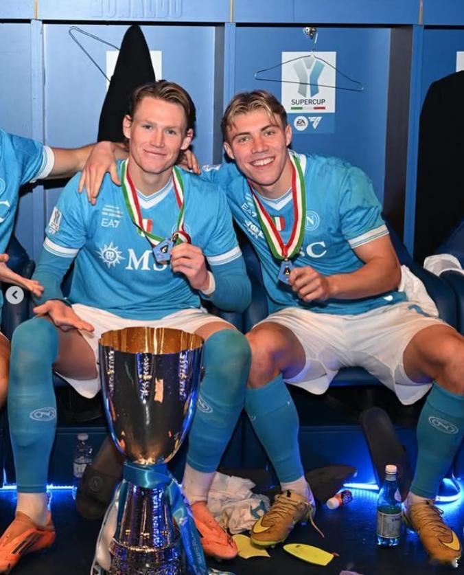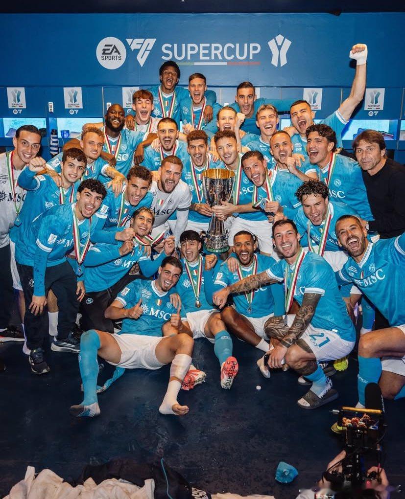🔵那不勒斯夺得意大利超级杯冠军麦克托米奈再添一冠🏆🏆霍伊伦加盟后第一个冠军🏆德布劳内因伤没有随队前往沙特