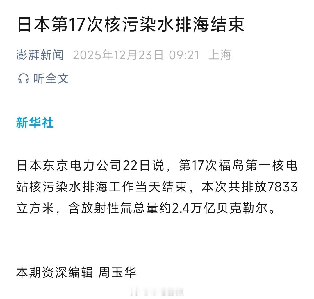 不知不觉,日本的核污染水已经排了17次了。动不动把自己装扮成人畜无害的白莲花,私底下龌龊事做尽了日本应当尽快还上历史欠账
