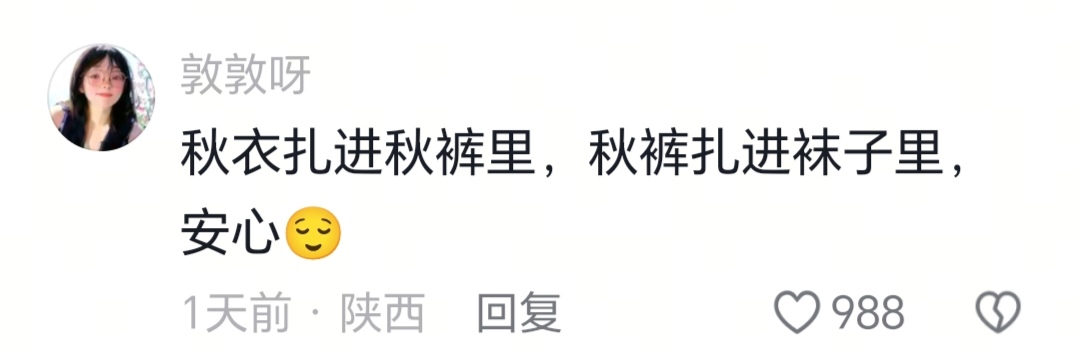 秋衣扎进秋裤里,秋裤扎进袜子里,这样才安心