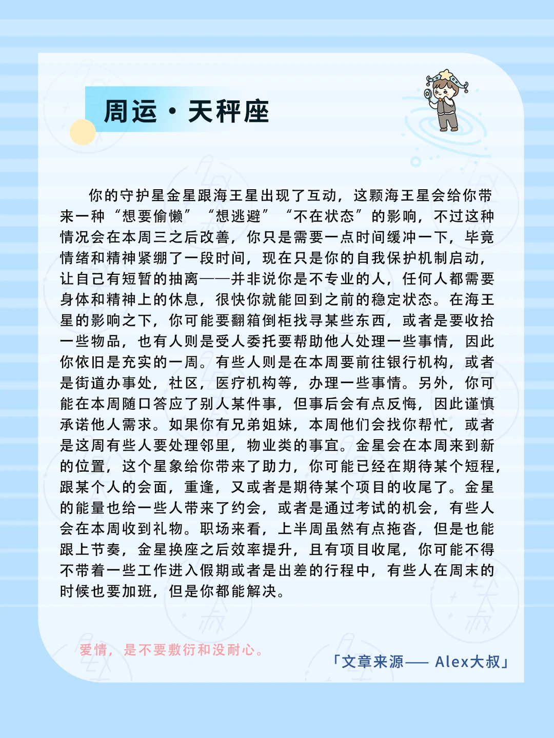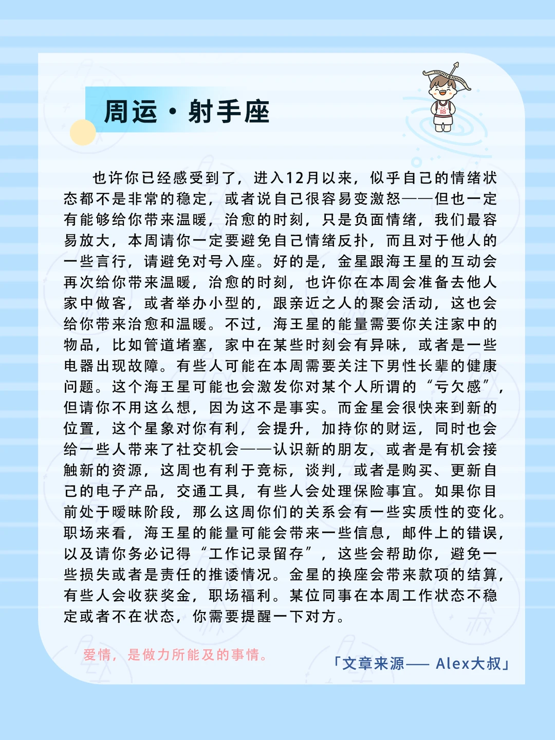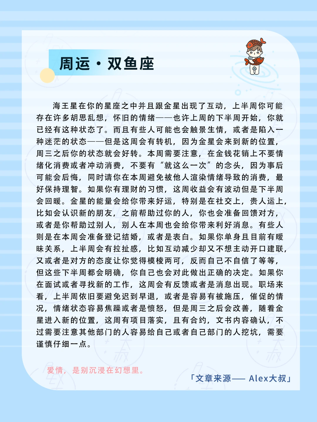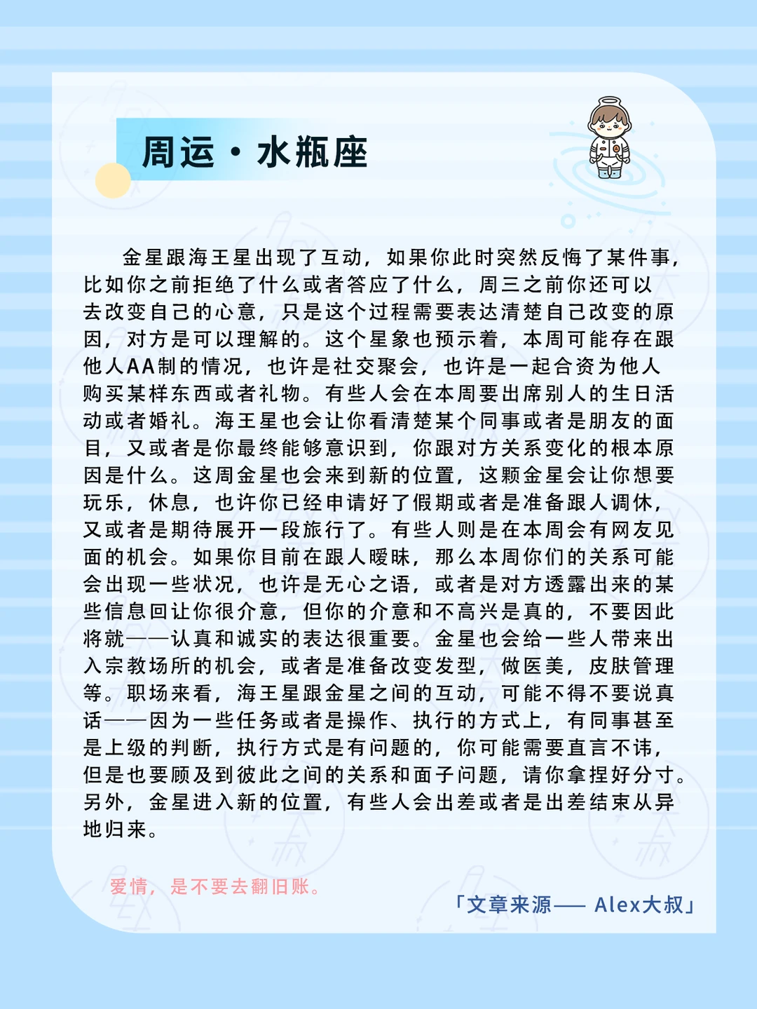 我们需要保持祛魅的心态,海王星会有过度美化,过度包装的含义在,这周对商品,服务或者是别的东西,都要保持一种理性,客观立场很重要。
