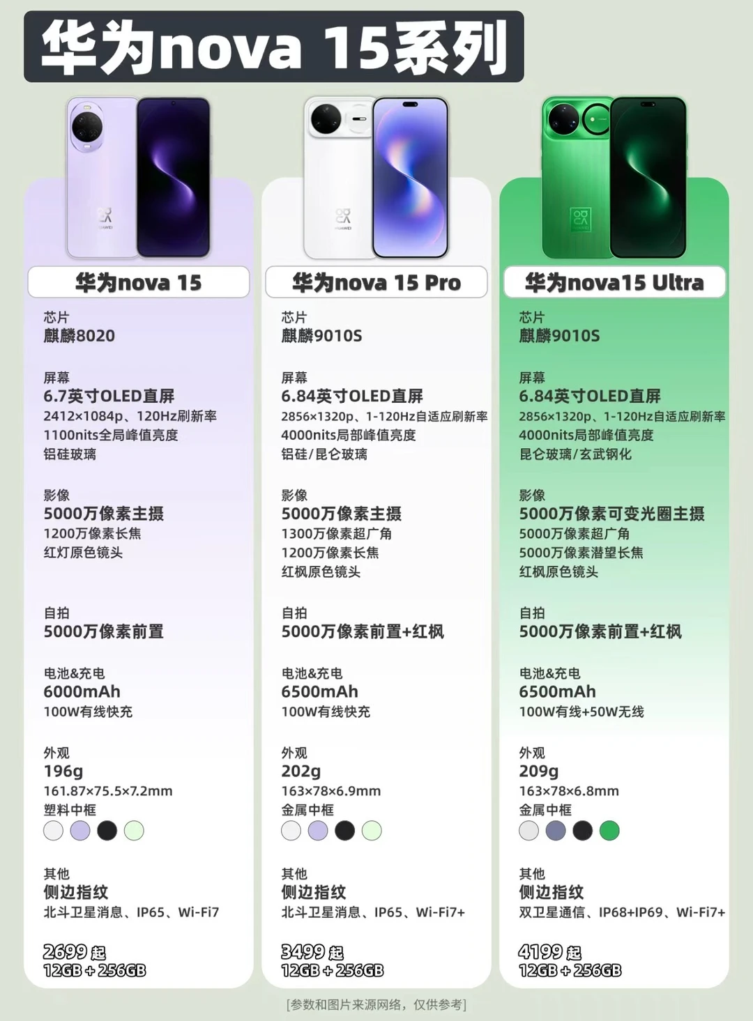 华为nova15系列发布了,这次带来三款机型15、15 Pro和15 Ultra。