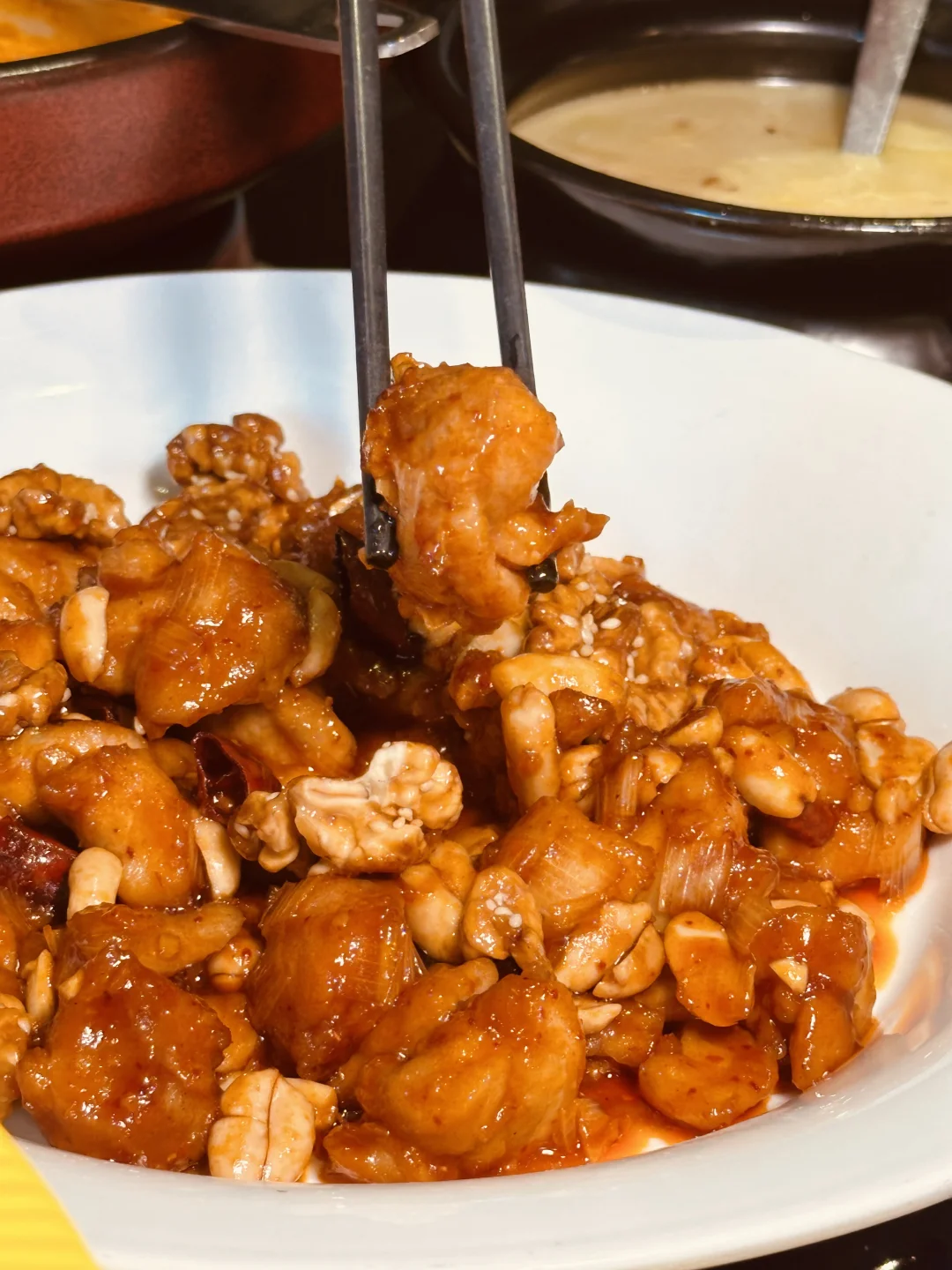 ✅宫保鸡丁:酸甜微辣的经典口味,鸡肉嫩到抿嘴化,核桃和花生脆香,太下饭🍚了