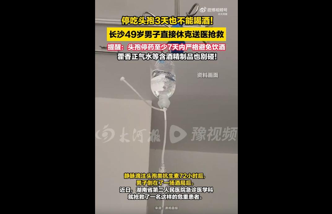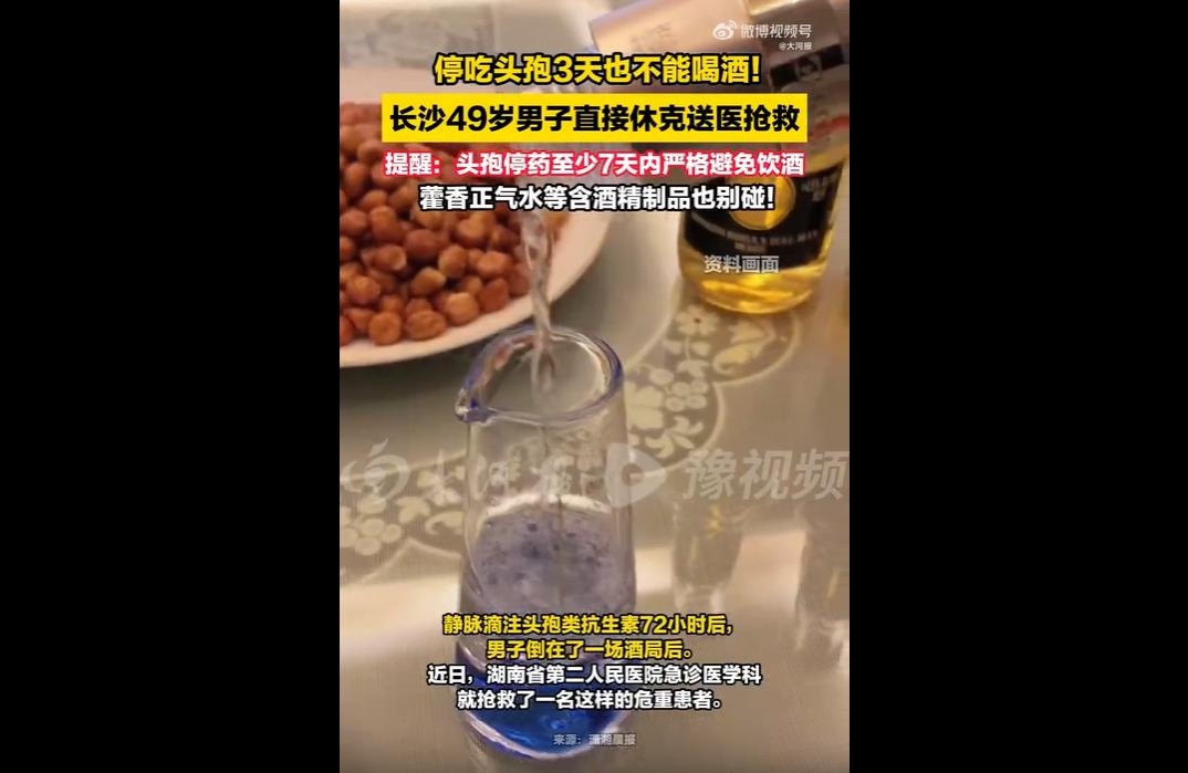 近日,长沙49岁李先生因感冒静脉滴注头孢类抗生素,停药72小时后自认药物已代谢,晚宴饮用白酒,随后突发双硫仑反应致分布性休克,经紧急抢救才转危为安。 医生强调,头孢用药期间及停药后至少7天需严格避酒及含酒精制品。 49岁的人了,连“头孢配酒,说走就走”的警告都当耳旁风,停药72小时就敢喝酒,差点把自己喝没了,这事儿看得人又气又无奈! 李先生自以为“严格计时”就能高枕无忧,殊不知这种想当然的“谨慎”,恰恰是拿自己性命赌的愚蠢冒险,背后藏着的是对医学常识的极度无知,更是对自己生命的不负责任。 按说,感冒输液用了头孢,医生肯定反复叮嘱过不能喝酒,可他倒好,就凭着自己的“计算”,觉得72小时药物就代谢干净了,转头就去喝白酒。 这哪里是“严格计时”,分明是对医学规律的蔑视! 医学上药物代谢哪是简单算天数就行的?每个人的体质、肝肾功能、用药剂量都不一样,药物半衰期也不同,尤其是含甲硫四氮唑侧链的头孢,代谢起来更慢。 他只盯着“72小时”这个数字,完全忽略了个体差异这些关键因素,把自己的性命当成了试验品。 结果呢?酒局刚结束就出现剧烈头晕、皮肤潮红,最后直接休克,血压降到80/40mmHg,命悬一线。 万幸是抢救回来了,要是晚一步,这辈子就彻底交代了。 这种拿生命开玩笑的行为,不光害了自己,还把家人吓得半死,占用了宝贵的医疗资源,纯属得不偿失。