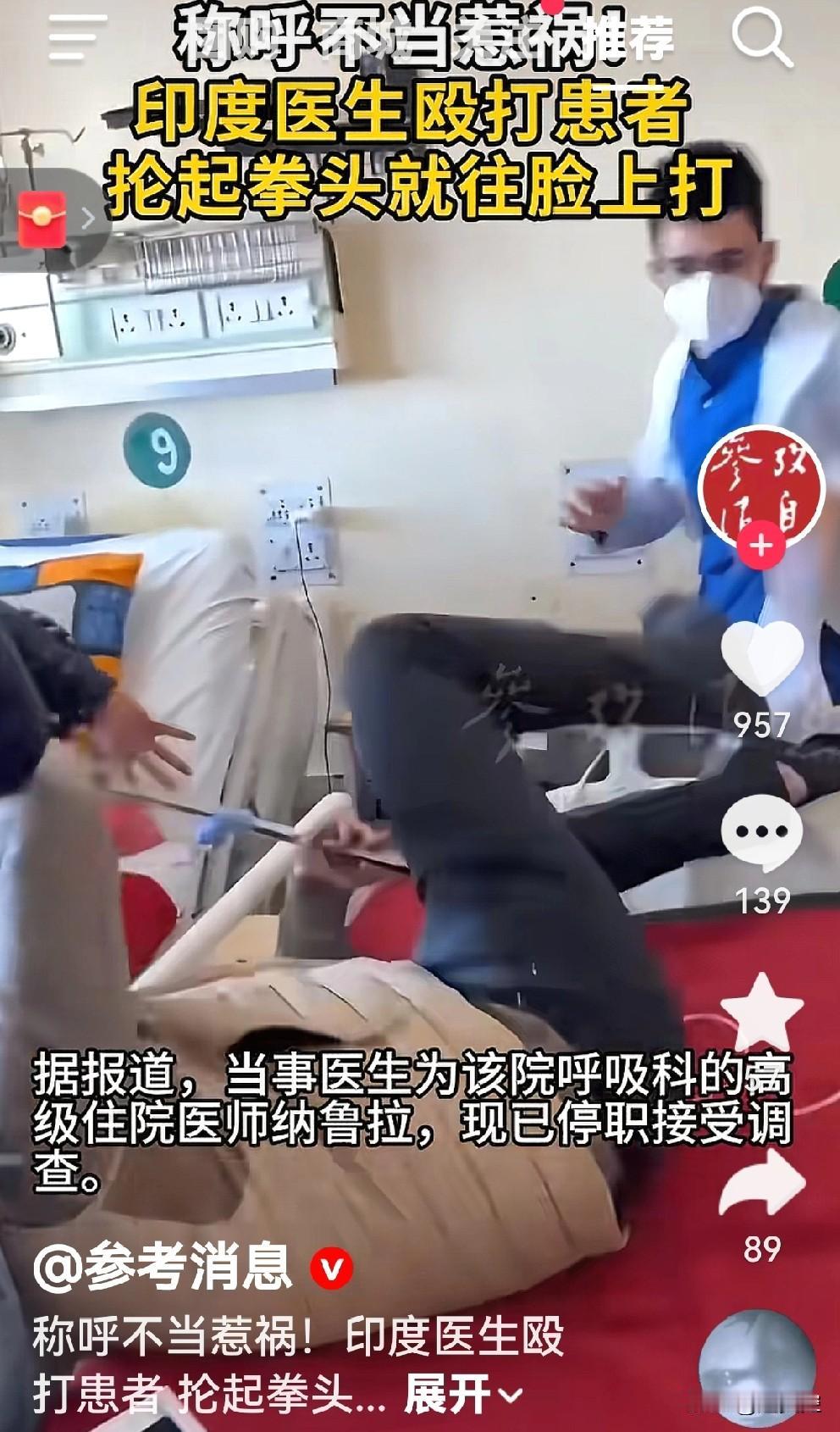 印度医生一言不合狂打患者。据参考消息报道,印度医生因为称呼不当,直接挥拳暴打患者