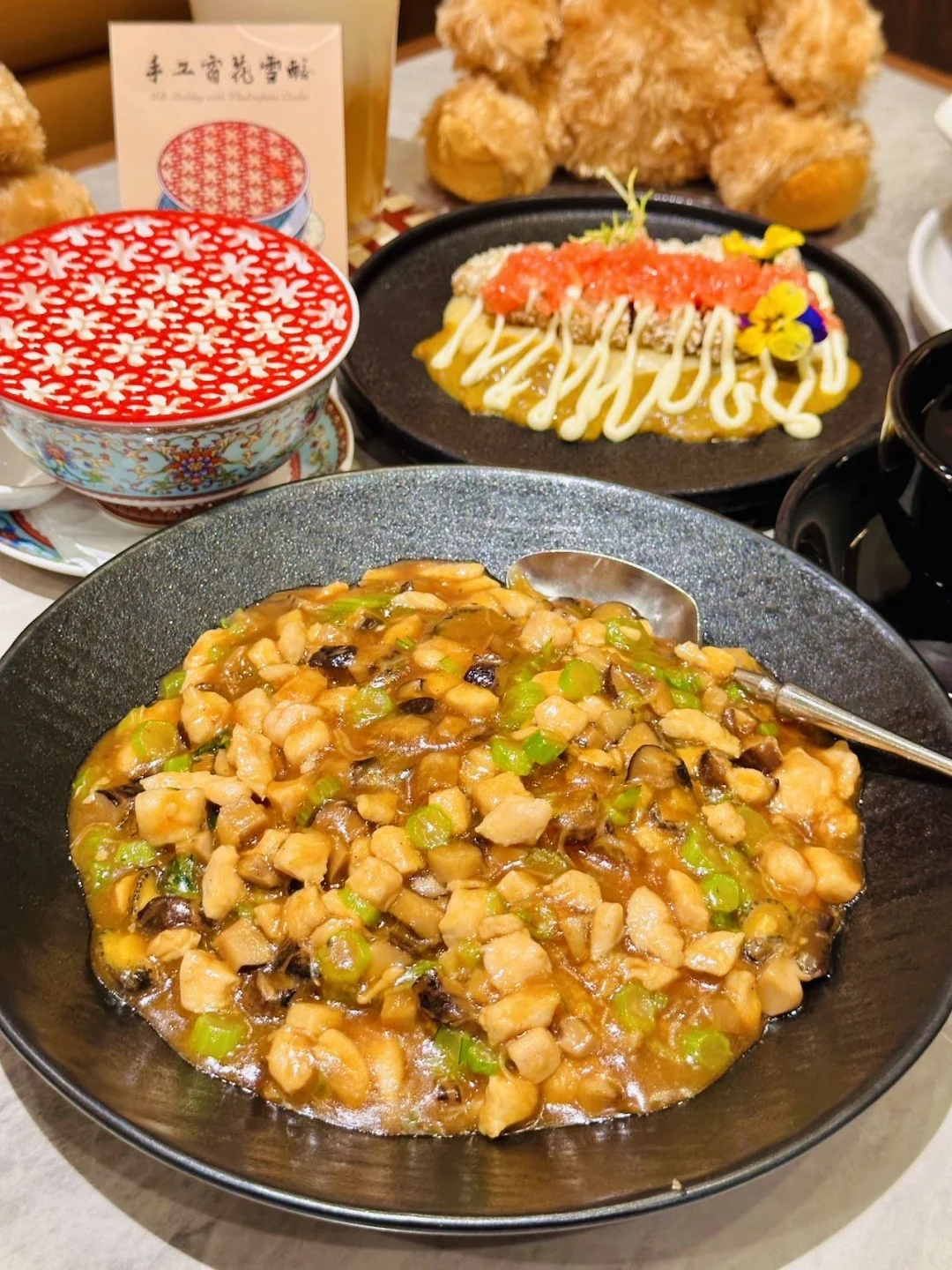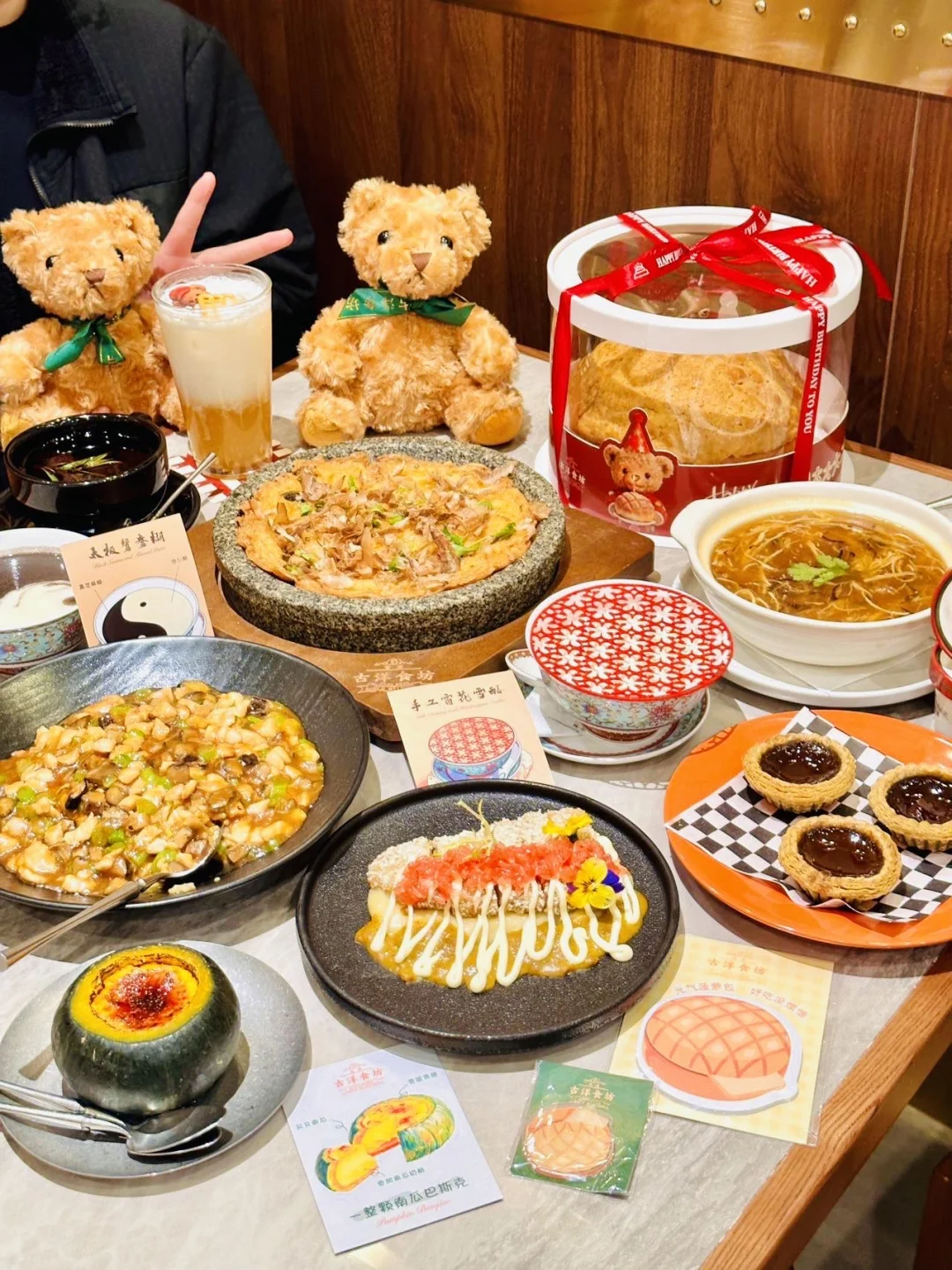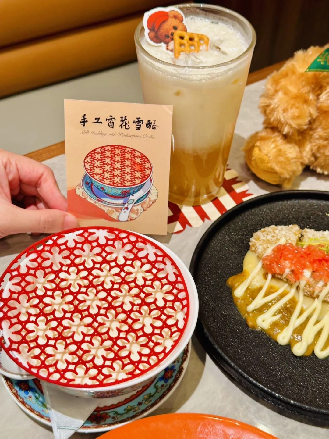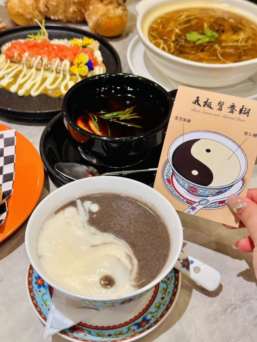 被这家的甜品狠狠圈粉了✨ 复古双层空间 氛围感直接拉满 和姐妹约会拍照吃饭一站式搞定📸 ☕️咖啡酥皮蛋挞 酥皮一碰就掉渣 带着淡淡咖啡焦香 内馅嫩得像布丁 甜苦平衡得刚好 不愧是顺德来的爆款 吃完念念不忘 🍧手作窗花雪酪 造型像琉璃窗花 都舍不得下勺 口感比冰淇淋轻盈 清甜不腻 奶香在嘴里化开 妥妥的解腻神器 ⚫️⚪️太极鸳鸯糊 黑芝麻糊浓香➕杏仁糊清甜 拼成超治愈的太极图案 热乎乎喝下去 秋冬幸福感瞬间满格 🍍巨无霸菠萝包 size真的惊到我了!比脸还大! 外皮酥脆到掉渣 内里蓬松柔软 抱着啃太过瘾 当生日蛋糕也超有创意 ✨环境是复古摩登港风 超好出片 适合姐妹聚会或约会 已经约好下次再来试试其他菜啦~