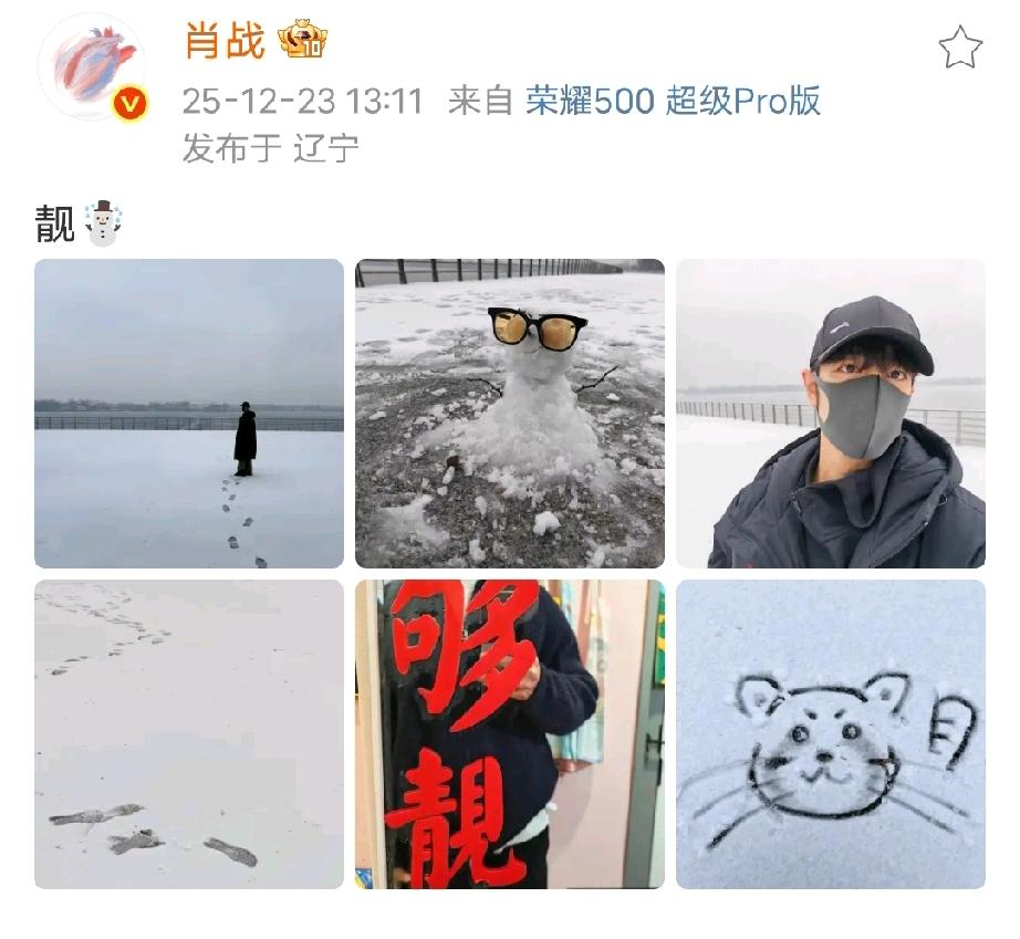 啊啊啊,肖战发来明信片啦! 谁懂啊! 去新雪地踩了一串软乎乎的脚印,堆的雪人戴墨镜也太酷了吧,还画了超萌小画! 最绝的是拍了张 “够靓” 合照,原来新角色叫刘峥亮,谐音梗玩得飞起 [偷笑]! 一开始以为画的是小老虎,结果额头没 “王” 字,原来是小猫咪啊,难道是新暗示? 笑不活了! 还有坚果被画成招财猫,举着小手手超霸气,我第一眼居然看成老鼠,评论区全在纠正 “是猫啊”[呲牙]! 明明今年不是虎年,这小猫咪也太会勾人了,新角色 + 可爱涂鸦,信息量满满! 有没有姐妹来解读下小猫咪的隐藏含义? 坚果的招财猫是不是在预示好运呀,真的有钱本人既视感!