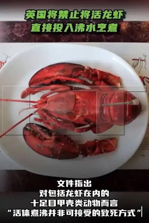 活煮龙虾要违法了! 英国新规要求先冷冻或电击致昏,说这是减少甲壳类动物的痛苦。有人夸是文明进步,也有人调侃“换种死法还是要吃,不如直接超度”。 这波操作你怎么看?