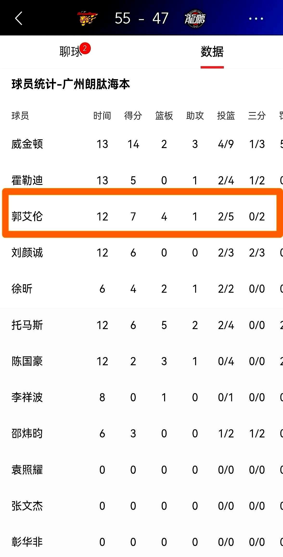 郭艾伦这赛季,真是一波三折。 之前有场球,他上场12分钟正负值-14,当时网上都炸了,很多人说他不行了,腿脚跟不上脑子了。 结果呢?2024年8月转会广州龙狮后,他用实力说话。10月29日打深圳砍下25分7助攻;11月30日对吉林更是三分6中6,拿到32分。这状态,明明在回暖。 就连去年12月13日,那个时隔325天复出的首战,他也拿到16分,正负值+22帮广州取胜。 谁能想到,今年2月训练中右眼受了重伤,结膜破裂缝了40多针,还一度短暂失明,全明星赛也去不了了。真的真的太难了。 他那股不服输的劲儿,还在呢。经纪人说只要没大事,他肯定会回来,目前正在康复中。 从被质疑到证明自己,再到意外受伤。只希望他这次能顺利点,好好康复吧。