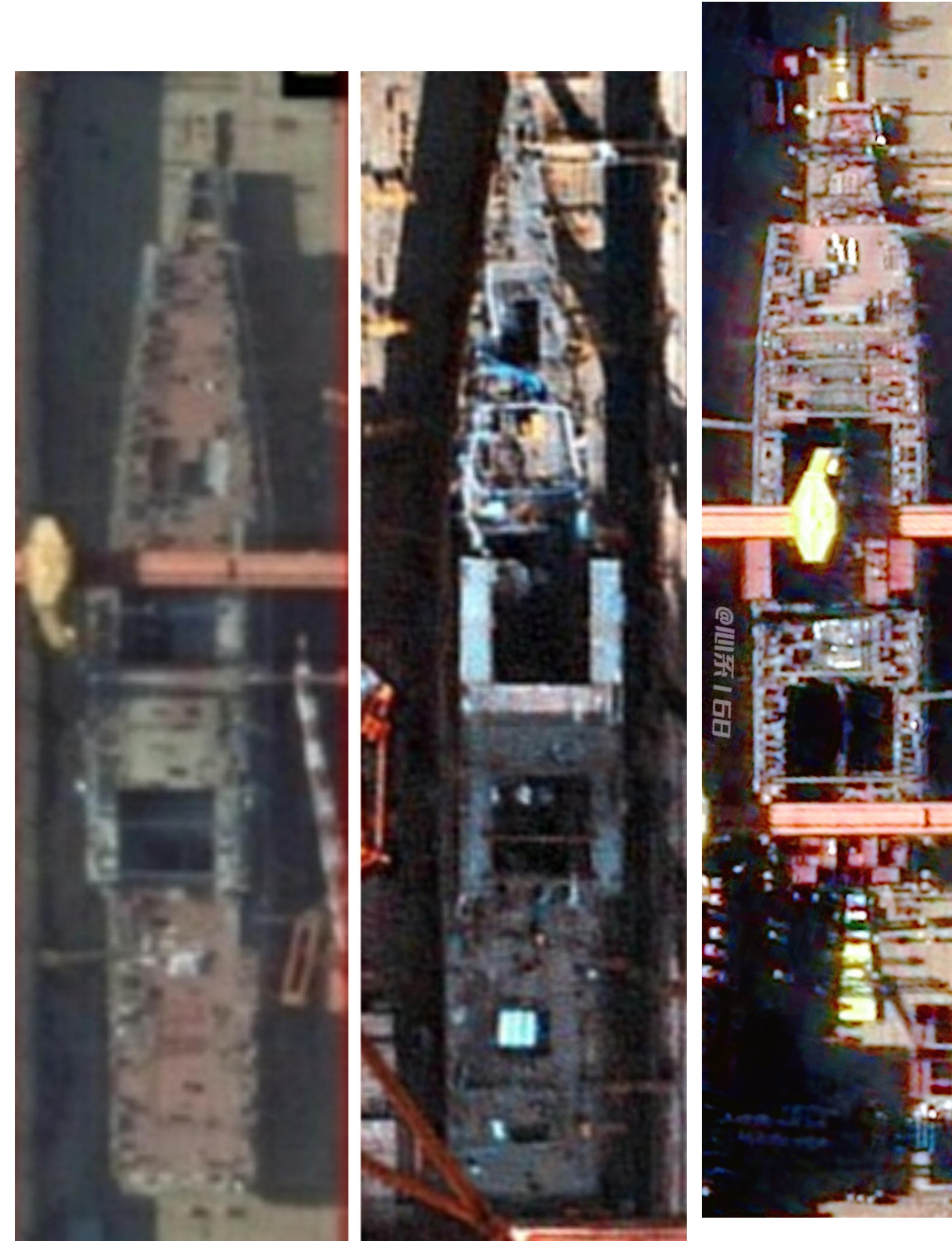 004与003差不多阶段的卫星图对比 004舰尾还差一大截未搭载,机库侧壁都上了。到农历年底004就能超过图一003的搭载进度,基本类似图二福特号的建造进度 按目前的建造进度004大约在27年6月之前就能下水!“世一航”的建造速度真的猛!图源烽火问鼎计划