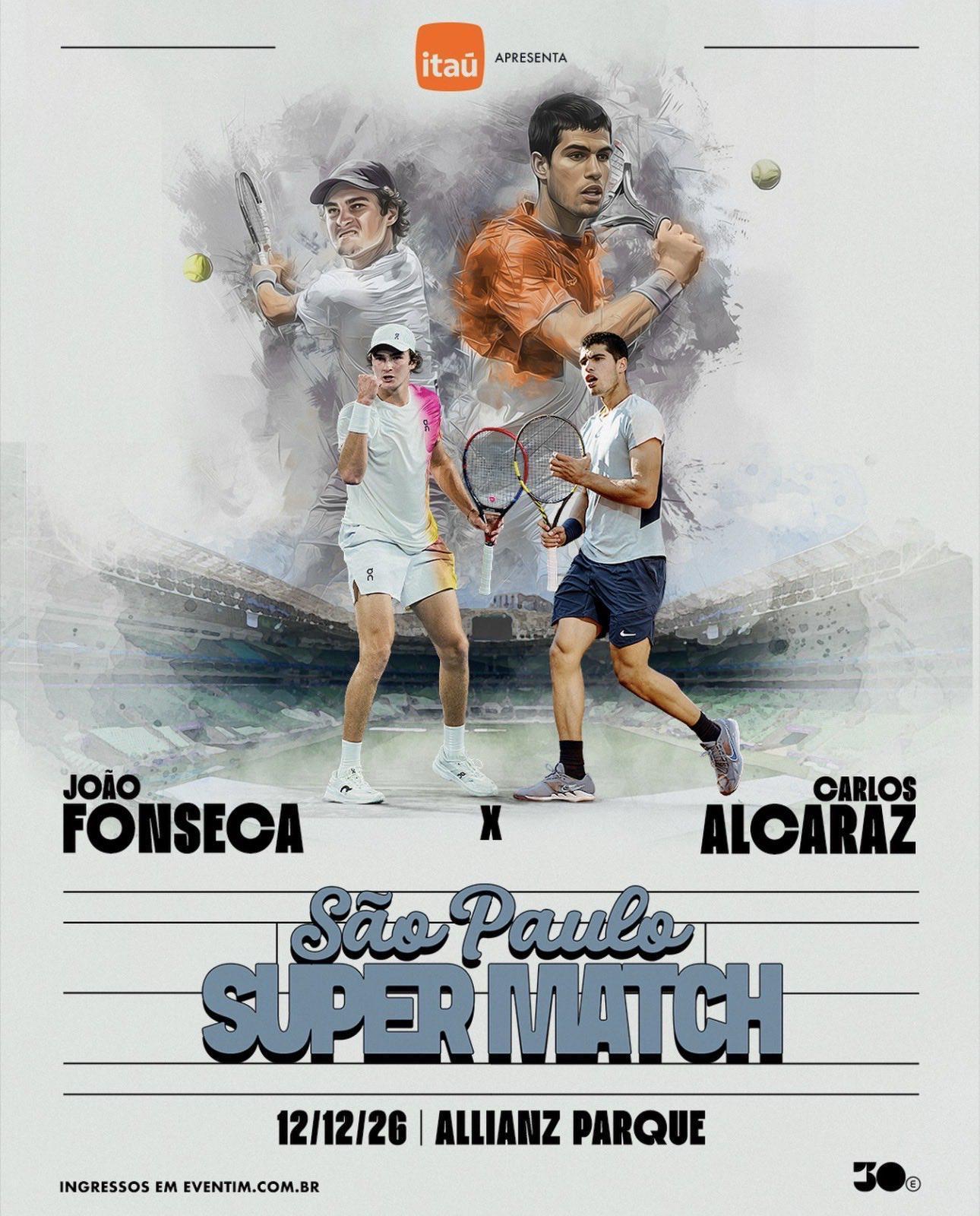 提前一年官宣阿尔卡拉斯与丰塞卡将于2026年12月12日在巴西圣保罗安联公园球场进行一场表演赛。该场馆可容纳4.36万人,估计巴西人届时应该可以塞满?🇧🇷体育大赏