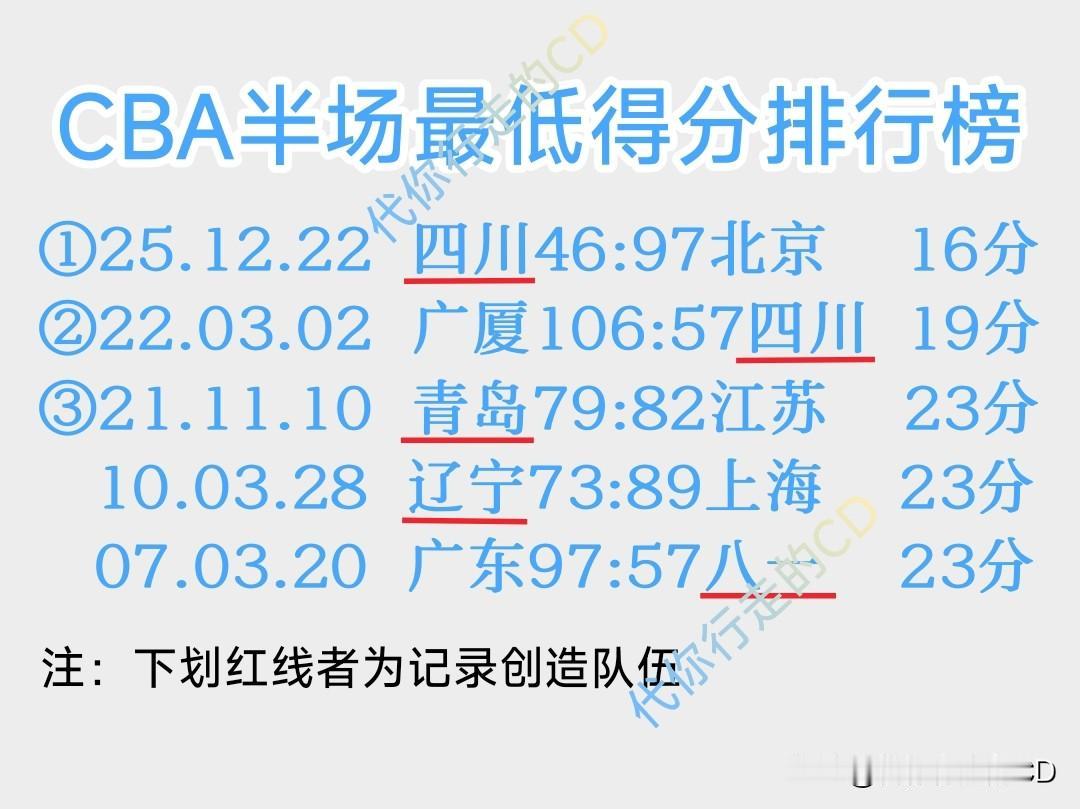 CBA半场最低得分...16分。 强如辽宁、八一都不幸上榜! 谁还没有个低谷的时候?!