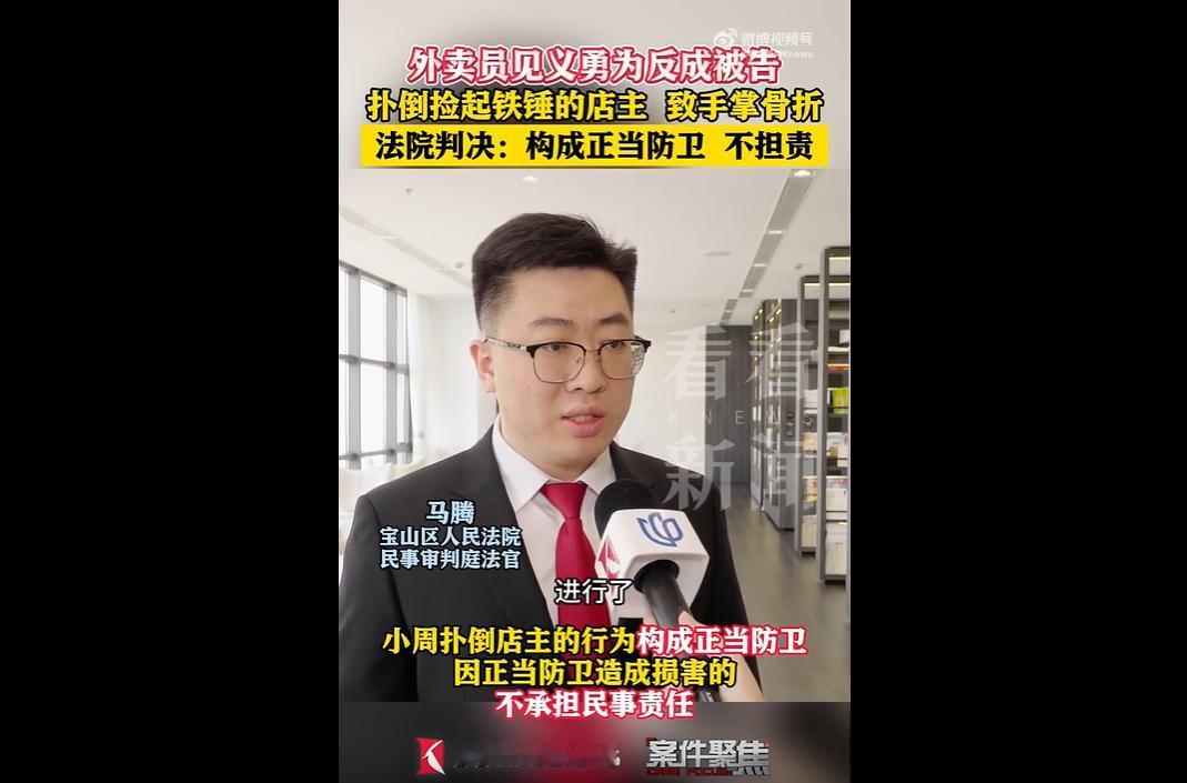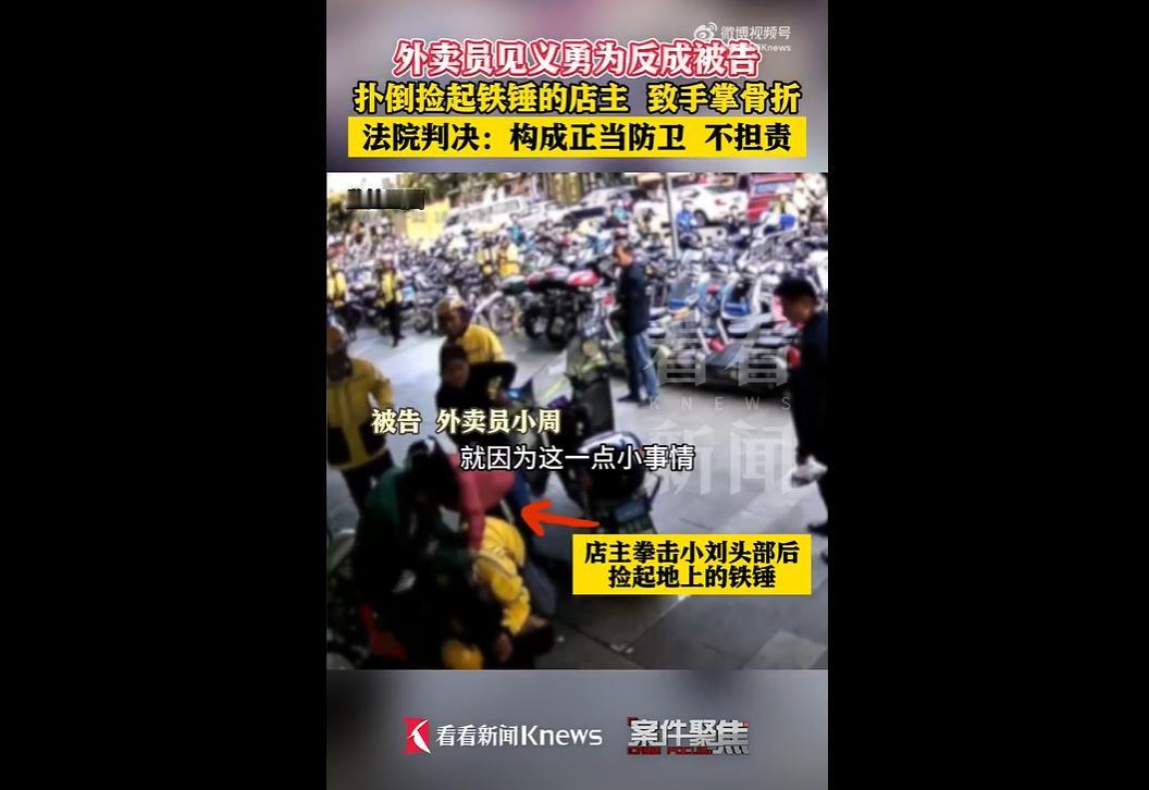 外卖员小刘和修车店主起了冲突被打,店主还捡起铁锤要动手,同事小周赶紧上前扑倒制止,结果店主骨折后反倒把小周告了,要索赔12万! 法院查清实情,认定小周是正当防卫,直接驳回诉求,说他避免了更严重的麻烦! 家人们,这判决真的太让人舒心了!这位店主也是挺会整活的,典型的恶人先告状嘛。 自己先动手打人,还拿铁锤想升级事态,小周出于义气上前制止,明明是妥妥的正当防卫,结果他倒好,骨折了反过来要12万,这操作也是没谁了! 最有意思的是,店主还找了个超牵强的借口,说拿铁锤是为了修车。 这理由真的站不住脚,监控都拍得清清楚楚,捡锤之前还在追着小刘打,下一秒就说要修车,谁会信呀? 还好法院看得明明白白,直接戳破了这个小借口,认定小周不用担任何责任,这波判决真的很公正,守住了该有的分寸! 说实在的,要是这次法院没站在小周这边,估计以后大家遇到这种事都会犹豫要不要出手帮忙了。 毕竟做好事还可能被碰瓷索赔,换谁都会有点顾虑。 不得不说小周是真勇敢,看到同事被欺负还面临铁锤威胁,一点都不犹豫就冲上去了,这波正能量必须夸!