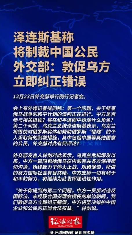 12月23日外交部例行记者会上,林剑的回应说得太提气了!针对乌克兰拟制裁中国公民的消息,中方直接亮明立场:反对没国际法依据、没安理会授权的单边制裁,敦促乌方赶紧纠正错误,咱的企业和公民权益必须坚决维护。 要知道中方一直都在为俄乌停火劝和促谈,努力有目共睹,现在平白无故要制裁中国公民,实在说不过去。单边制裁本来就是霸权套路,没规矩还不讲理,真当谁都能随便拿捏? 国家永远是咱最硬的后台,这份明确表态就是给大家吃定心丸。你怎么看这事?评论区聊聊~