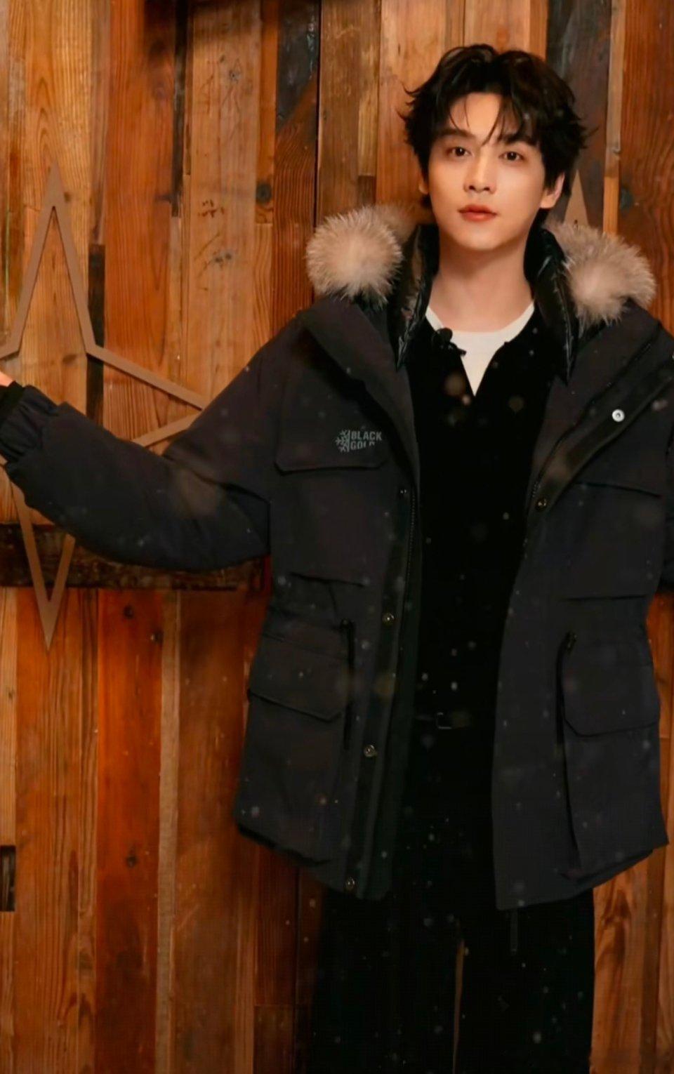 田栩宁高梵直播,羽绒服穿搭,雪中王子