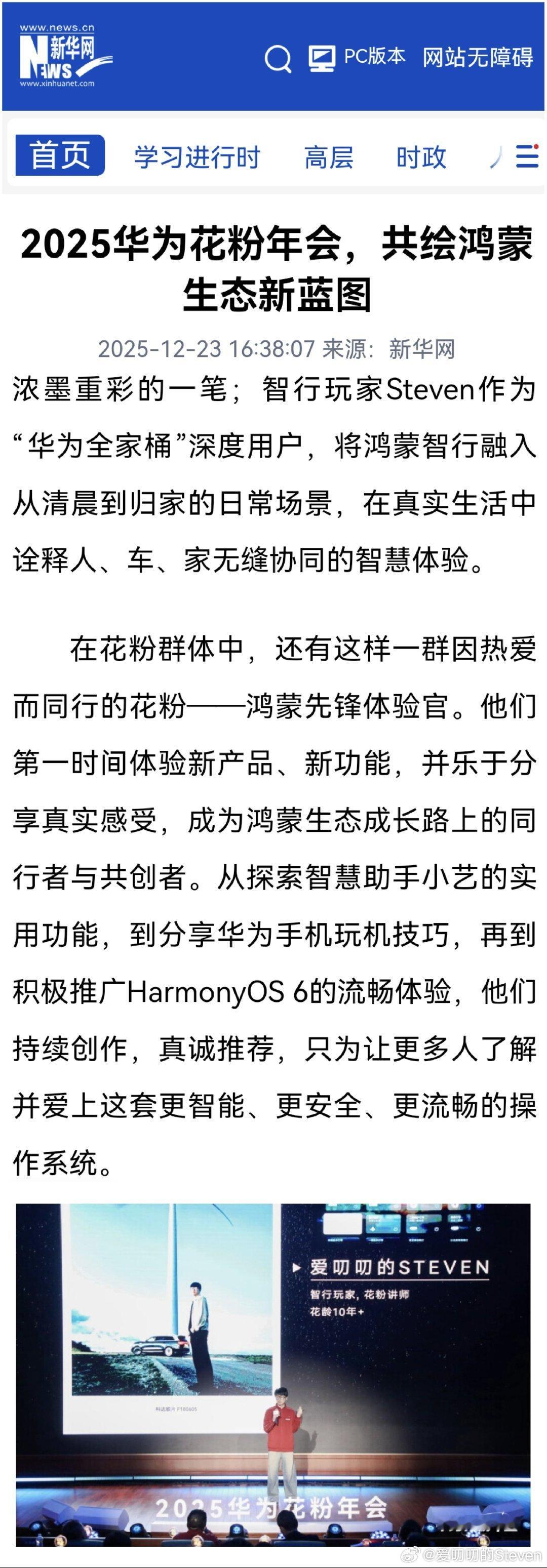 又上官媒了,这回是新华网。还是华为全家桶,鸿蒙“人车家”。全家桶用户的日常。