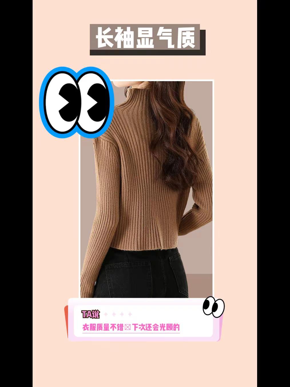 秋冬必备!温暖又时尚❤️。这款半高领针织开衫上衣简直是秋冬必备!