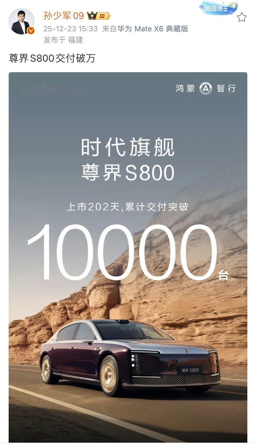 孙少军:尊界S800交付破万! 哇塞,这么贵的车,不到一年的时间,累计交付数量就超过了1万台。这确实是创造了国产车价格与销量的双重记录,确实有车比尊界S800卖的更贵,但是销量没有这么高。 这款车在很多老板眼中的认可度还是非常高的,从这种豪华车型的销量上来看,很多老板挣的钱是越来越多,根本就不像大家想象中的钱不好挣了。 各位是怎么看的?欢迎评论区留言。