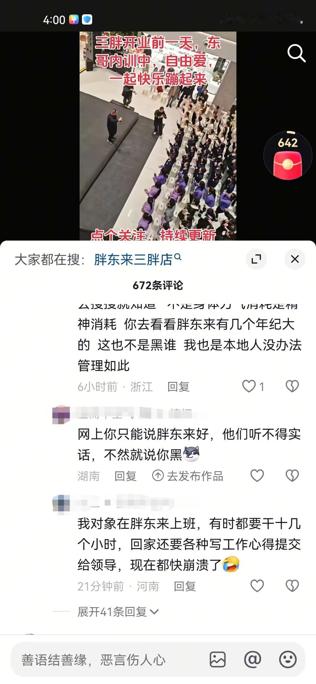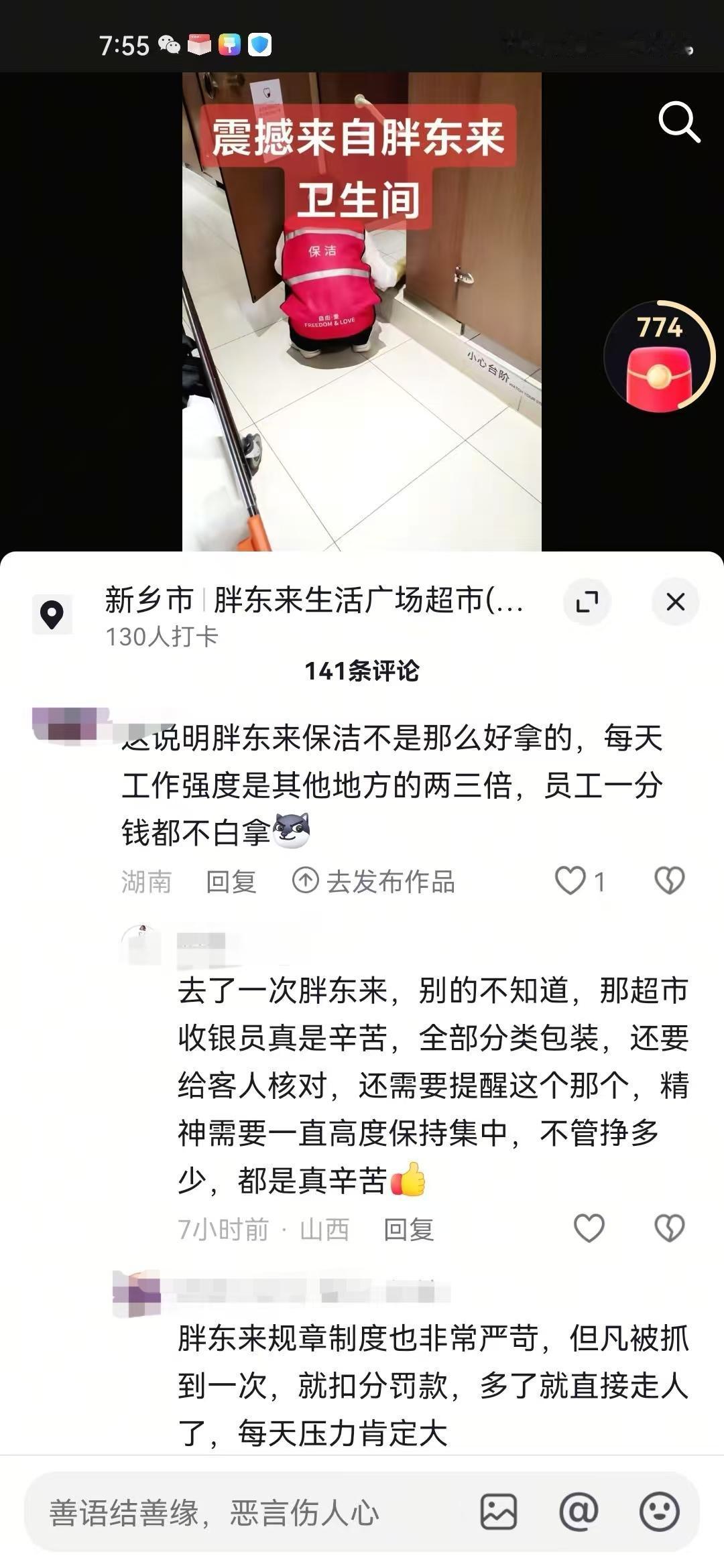网上网友说胖东来每天上67小时班,一年150天假期,每月工资1万,说得好像跟玩一样,这是真实的吗? 看到不少网友都非常羡慕去胖东来工作,认为只要进去,就跟考到事业编一样,每天躺着拿钱就行了。 然而也有知情网友表示不是这样的,有个柜员网友去胖东来购物,表示跟胖东来的收银员对比,自己柜员工作简直太轻松了。 有个网友的姑姑在胖东来干了12年,她每天都要报表数据整合书,精神压力很大,这就是为什么胖东来老员工很少,都是年轻人的原因之一。 所以大家不要光羡慕胖东来员工工资高,但是人家的进去门槛高,工作强度也大,员工一分钱也不是白拿的。