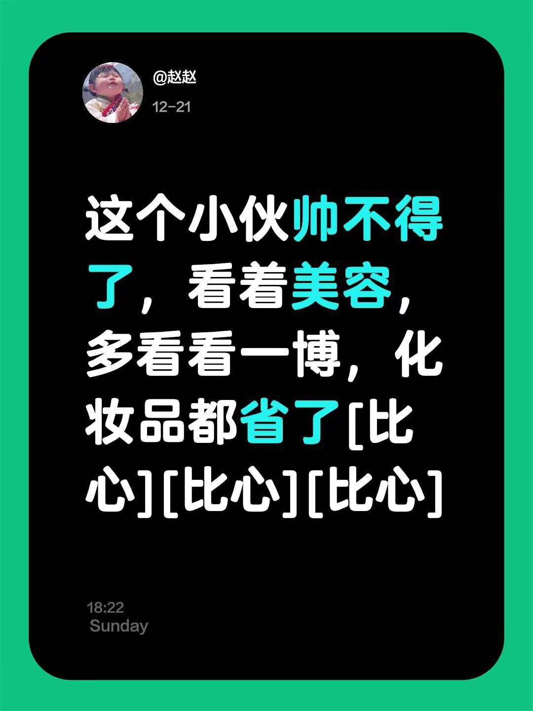我评论了@王一博ForYIBO 的作品:这个小伙帅不得了,看着美容,多看看一博,化妆品都省了[比心][比心][比心]