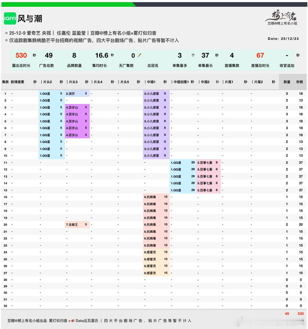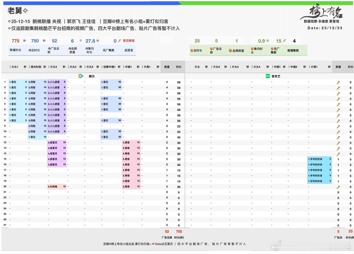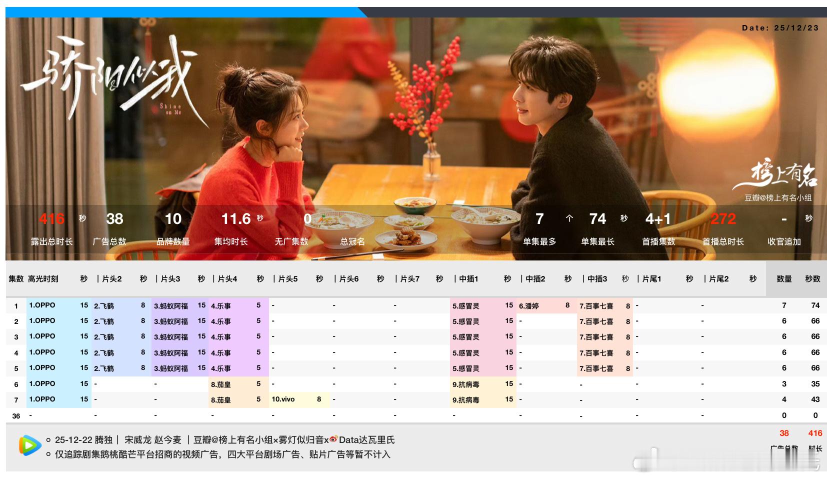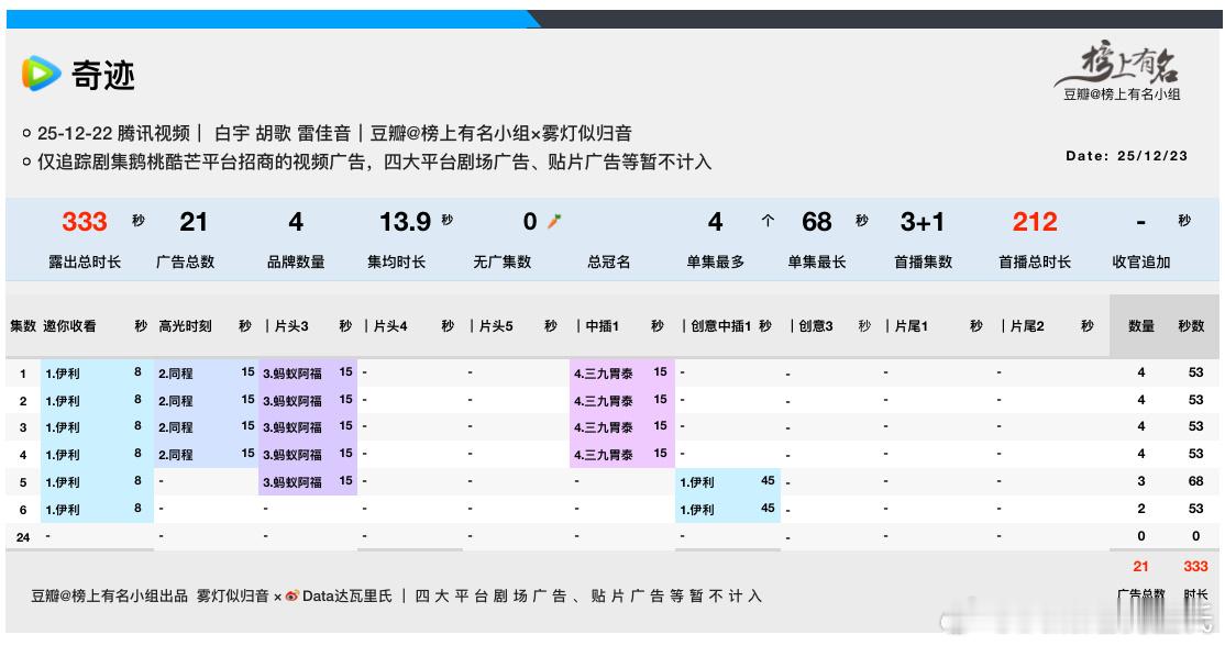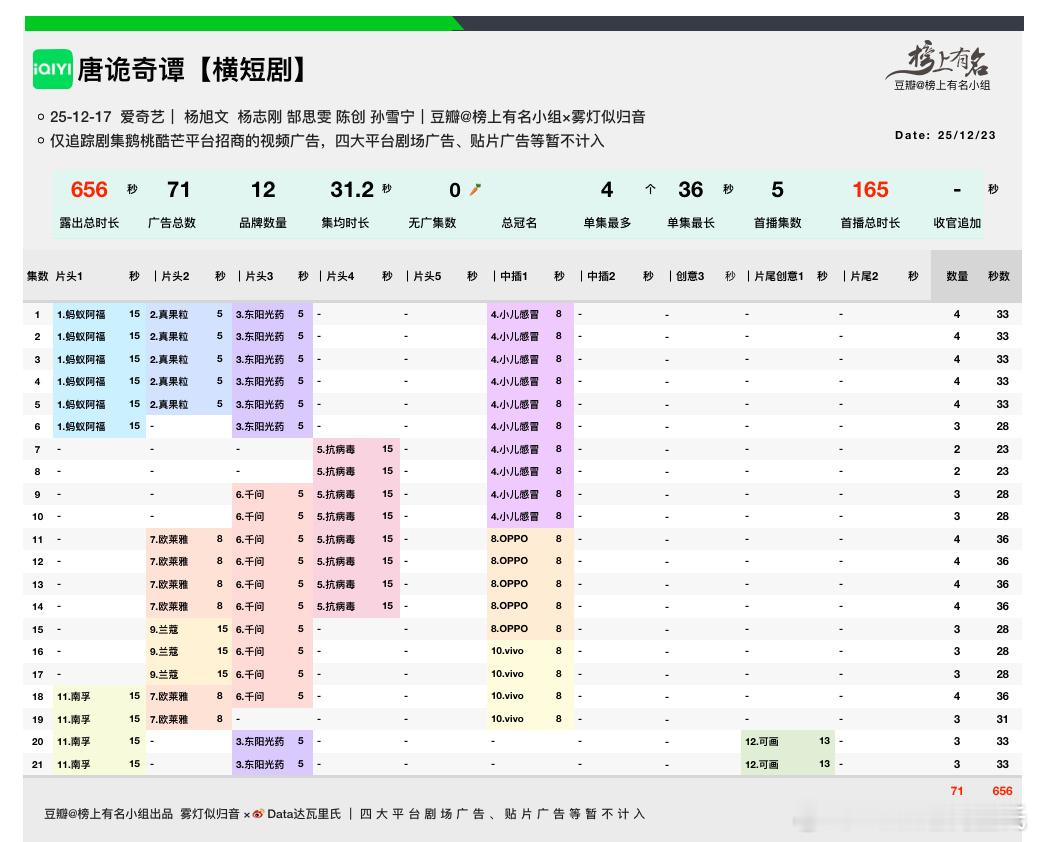 12.23新剧招商长安二十四计 总冠名+总时长破2000s老舅双平台 总时长775s风与潮 总时长530s骄阳似我 总时长416s唐诡奇谭 656s奇迹 333s