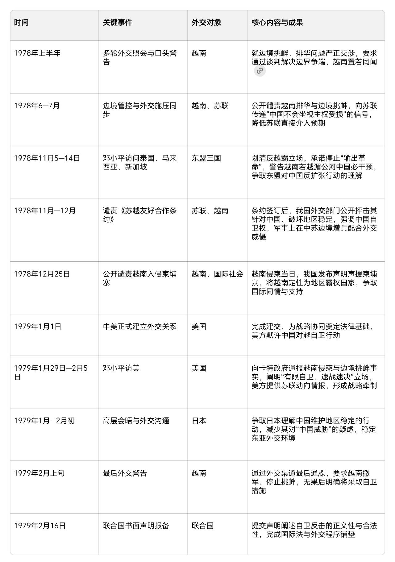 有人让我顺带梳理一下对越自卫反击战之前,我国做了哪些外交上的努力? 其实每次我国对外自卫反击战,都是在外交努力已经无效的情况下,才迫不得已采取武力手段的。 相对于对印自卫反击战前期的外交铺垫,长达10年的时间。对越南的自卫反击战,外交铺垫了将近一年的时间。 79年越反击战