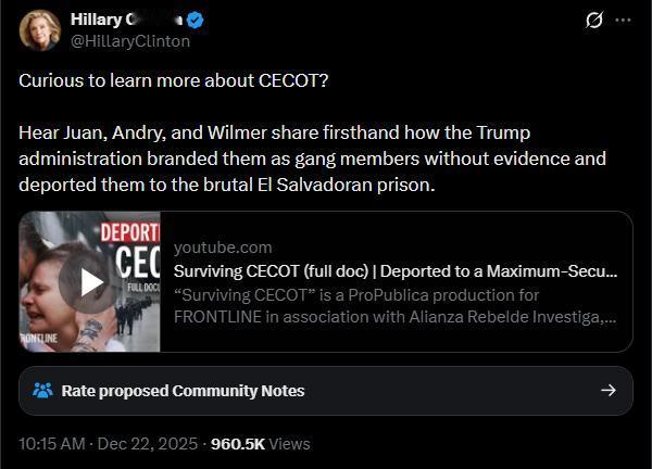 🚨 🇸🇻 🇺🇸 布克莱嘲讽希拉里:“我们将把所有监狱囚犯释放给任何愿意接收他们的国家” 针对希拉里·克林顿对其最高安全级别监狱CECOT的批评,布克莱做出了猛烈回应,提出将所有帮派成员和“政治犯”释放给美国或任何其他愿意接收他们的国家: “希拉里·克林顿国务卿女士,如果您确信CECOT存在酷刑,萨尔瓦多愿意全力配合。 我们愿意将我们所有监狱囚犯(包括所有帮派头目和所有被描述为‘政治犯’的人)释放给任何愿意接收他们的国家。 唯一的条件很简单:必须是所有人。 这将极大地帮助记者和您最喜欢的非政府组织,他们将可以采访数千名前囚犯,从而……” 要找到更多批评萨尔瓦多政府的声音(或者愿意证实那些早已预料到的结论)要容易得多。 布克莱将8万名MS-13和Barrio 18帮派成员关进了监狱,这些帮派成员曾让萨尔瓦多陷入数十年的恐怖统治。 现在希拉里却在抱怨监狱条件。 他的回应是:“你们想要他们?那就全带走。” 来源:@nayibbukele 🚨 🇸🇻 🇺🇸 BUKELE TROLLS HILLARY: "WE'LL RELEASE OUR ENTIRE PRISON POPULATION TO ANY COUNTRY WILLING TO RECEIVE THEM" Bukele delivered a savage response to Hillary Clinton's criticisms of his maximum security prison CECOT, offering to release every gang member and "political prisoner" to the U.S. or any other country that accepts them: "Madam Secretary Hillary Clinton, if you are convinced that torture is taking place at CECOT, El Salvador is ready to cooperate fully. We are willing to release our entire prison population (including all gang leaders and all those described as 'political prisoners') to any country willing to receive them. The only condition is straightforward: it must be everyone. This would also greatly assist journalists and your favorite NGOs, who would then have thousands of former inmates available for interviews, making it far easier to find additional voices critical of the Salvadoran government (or willing to confirm whatever conclusions are already expected)." Bukele locked up 80,000 MS-13 and Barrio 18 gang members who terrorized El Salvador for decades. Now Hillary's crying about prison conditions. His response: "You want them? Take them all." Source: @nayibbukele
