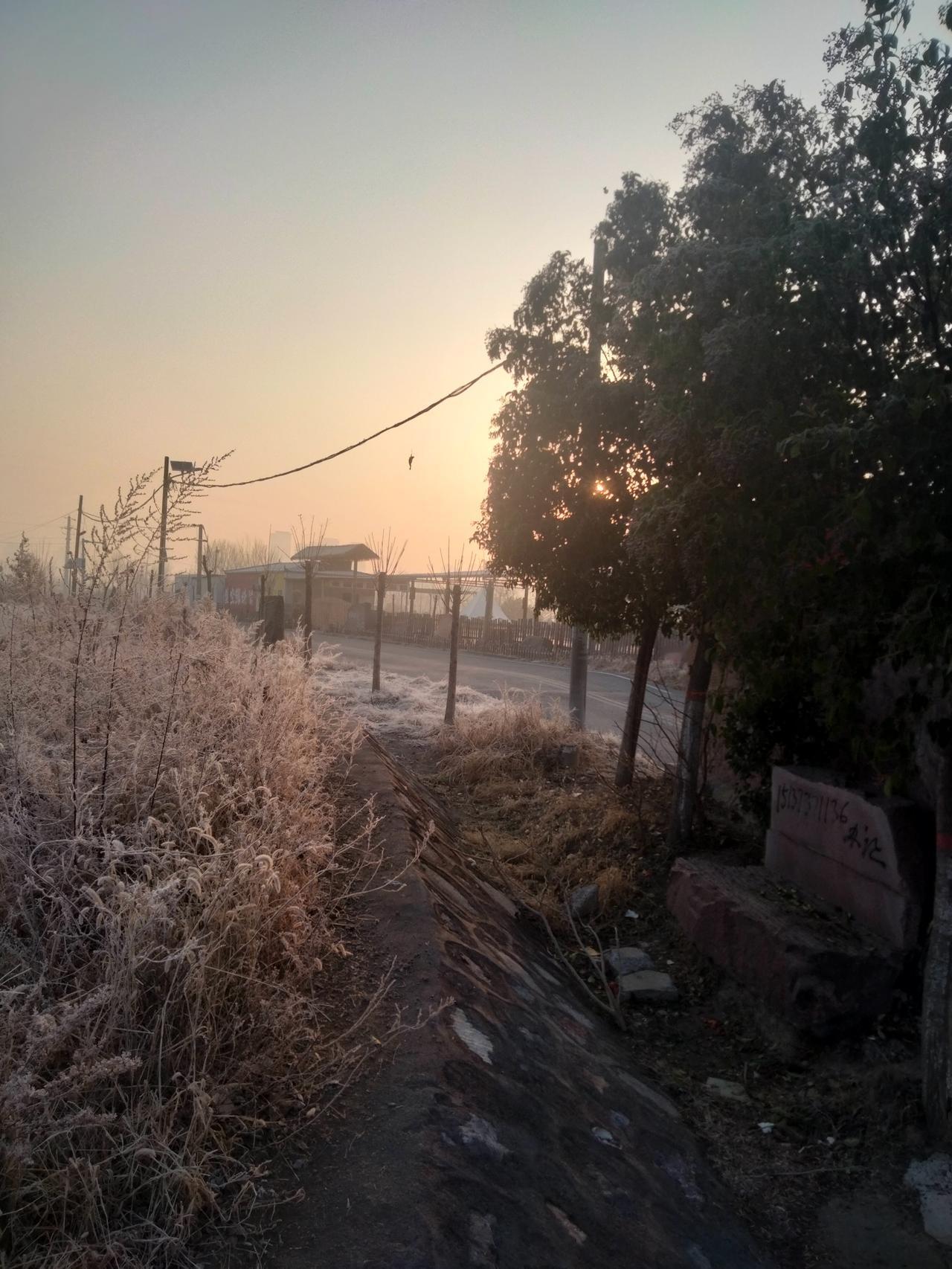 满地冰霜,也只有在河南农村早上能看到,太阳出来了,一会儿就没有了。