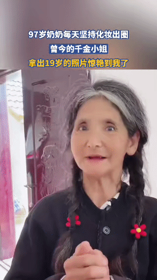 一位97岁的奶奶因每天坚持化妆意外走红,她曾是出身优渥的千金小姐。奶奶梳着麻花辫,精神状态很好,当她拿出自己19岁的照片时,旧照里身着旗袍的她眉眼精致、气质温婉,惊艳了一众网友,大家也被奶奶这份历经岁月仍热爱生活的模样深深打动。 时间还真是把杀猪刀啊!我无法想象等我老的时候是啥样子[笑哭]九旬老太奶奶 百岁精致老太