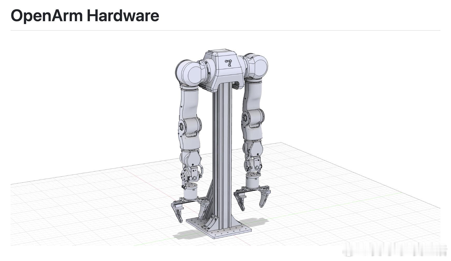 机器人硬件开发往往面临高昂的成本和封闭的技术生态,想要从零开始搭建一套稳定且可扩展的机械臂系统,通常需要耗费大量的研发精力。OpenArm Hardware 是一个开源的机器人硬件项目,旨在提供一套完整的机械臂 CAD 数据和制造信息,为机器人研发提供标准化的硬件基础。该项目不仅包含机械臂的全套组装模型,还提供了详细的制造指南、电路连接图以及物料清单,方便开发者进行定制、打印和复现。GitHub:github.com/enactic/openarm_hardware主要功能:- 提供 STEP 格式的完整组装文件,涵盖主控臂与从动臂设计;- 包含可直接用于 3D 打印的 STL 模型,方便快速制作原型;- 提供摄像头支架、PCB 轮毂外壳等各类功能性附件设计;- 详尽的接线图纸,指导电缆制造与复杂的电路连接工作;- 完整的技术规格说明、物料清单(BOM)及分步骤组装指南;- 采用 CERN-OHL-S-2.0 开源协议,鼓励社区提交改进与适配方案。项目支持多种 CAD 平台协作,并提供了完善的在线文档支持,适合机器人研究者、硬件工程师以及高级创客群体使用。