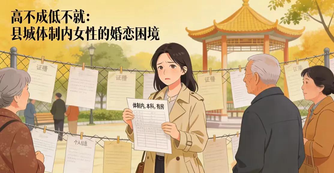 县域体制内“她”的婚恋困局:超越“剩女”标签的结构性难题 在县城相亲角,一场涉及27位女性的相亲活动,最终撮合成功的数量为零。这并非孤例,而是当下县域体制内女性普遍面临的“婚姻挤出”现实。 随着大量高学历女性通过人才引进或公考回流,她们在县城获得了稳定的工作,却面临着另一个意想不到的挑战——婚恋困难。与农村“光棍”问题不同,她们的困境主要源于自身条件高于婚配市场平均水平,这在社会学中被定义为 “婚姻挤出” ,是一种结构性问题。 01 “反常识”的现象:婚配市场的结构失衡 在全国范围内男性多于女性的大背景下,县城体制内女性的婚恋难成为了一种反常识的现象。一位32岁的女公务员吐槽道:“去年相亲会上,我们局去了26个女生,只有3个男生参加,最后成了0对。” 这组数字直观反映了县域婚恋市场的性别失衡。 根源在于人口流动的结构性筛选。有学者观察指出,近年来,女大学生返回县城的比率显著高于男大学生,导致县域体制内80后、90后群体出现了性别比失衡。一个调查显示,某县超过25岁的未婚女教师有2000多人,其中超30岁未婚的就有四五百人。 02 择偶逻辑碰撞:“不将就”与“难向下” 体制内女性的择偶观,在传统与现代的碰撞中呈现出复杂面貌。一方面,她们经济独立,月薪稳定,在小县城足以自立;另一方面,县城的婚配规则依然遵循传统的 “男高女低” 逻辑。 这种错位造成了现实尴尬:女性希望寻找与自己条件相当或更优的伴侣,但符合条件的男性却相对稀缺。一名在县城工作5年的女性简单算了一笔账:自己年收入稳定超过10万,当有人介绍月薪4000的超市主管时,她无法说服自己“用后半生的生活质量,换一个需要倒贴水电费的男人”。 03 狭窄的生态圈:封闭空间里的人言可畏 县城的熟人社会特性,让婚恋选择变得更为艰难。一位受访者形容,在县城体制内单位,“同事几乎是‘一辈子的邻居’” ,工作、生活、家庭全交织在一起。这使得她们的婚恋选择承受了额外的社会评价压力。 调研发现,很多女性并非没有遇到合适的人,而是不敢选择“不够体面”的对象,害怕背后议论的“你怎么找了个这样的”,这有时足以毁掉一段萌芽中的感情。这种压力,与大城市相对疏离、讲求边界感的人际关系形成鲜明对比。 04 观念解放与现实探索:她们的新活法 面对困境,越来越多的体制内女性开始主动求变,探索新的生活方式。研究发现,她们形成了 “不将就,向往爱情婚姻”、“慕婚姻,转向缘分婚姻”以及 “乐单身,追求自由最大化” 等多样化的个体化婚恋状态。 她们中不少人开始将精力转向自我提升,或与志同道合的姐妹组建“不婚主义姐妹会”,将生活重心放在工作、学习和兴趣上。她们的深夜朋友圈里,晒出的可能是“第七次修改扶贫方案”,配文是“比第七次相亲有成就感多了”。 05 破局之道:个体与社会的双重努力 解决这一结构性难题,需要多方共同努力。 对个体而言:在研究生论文中,学者建议,体制内年轻女性如希望在本地实现婚恋意愿,一个现实路径是趁年龄较轻、职级较低时确定婚恋对象。另一个更根本的选择,是勇于破除“男高女低”的传统规则,在体制外寻找合适的伴侣,或者参与更为广阔的全国婚姻市场竞争。 对社会而言:需要减少对女性“大龄未婚”的舆论压力,为个体提供更包容、多元的环境。相关部门也可以搭建平台,拓展她们的社交圈,并推动改变县域社会单一的“门当户对”评价标准。 这场“困局”最深刻的启示在于,它既是传统与现代观念激烈交锋的照妖镜,也测量着社会进步的尺度。当女性凭借自身努力获得了体面的工作和经济独立时,她们的婚姻选择权理应得到同等尊重。无论是选择坚守理想,还是勇敢打破传统,她们都在用实际行动重新定义县城女性的价值与可能。大龄婚恋观 女性婚恋困局 大龄女择偶观 农村婚恋困境 体制内大龄女生 农村婚恋困局 体制内女生择偶
