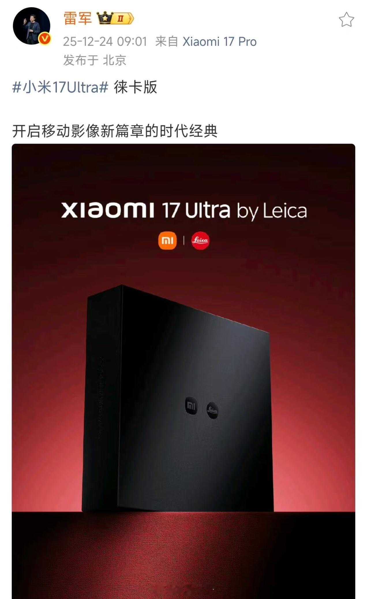 刚刚!雷军曝光了小米17 Ultra徕卡版小米17Ultra红标徕卡版传说中的纯正可乐标,应该就是这套尊享了吧,售价估计10000+