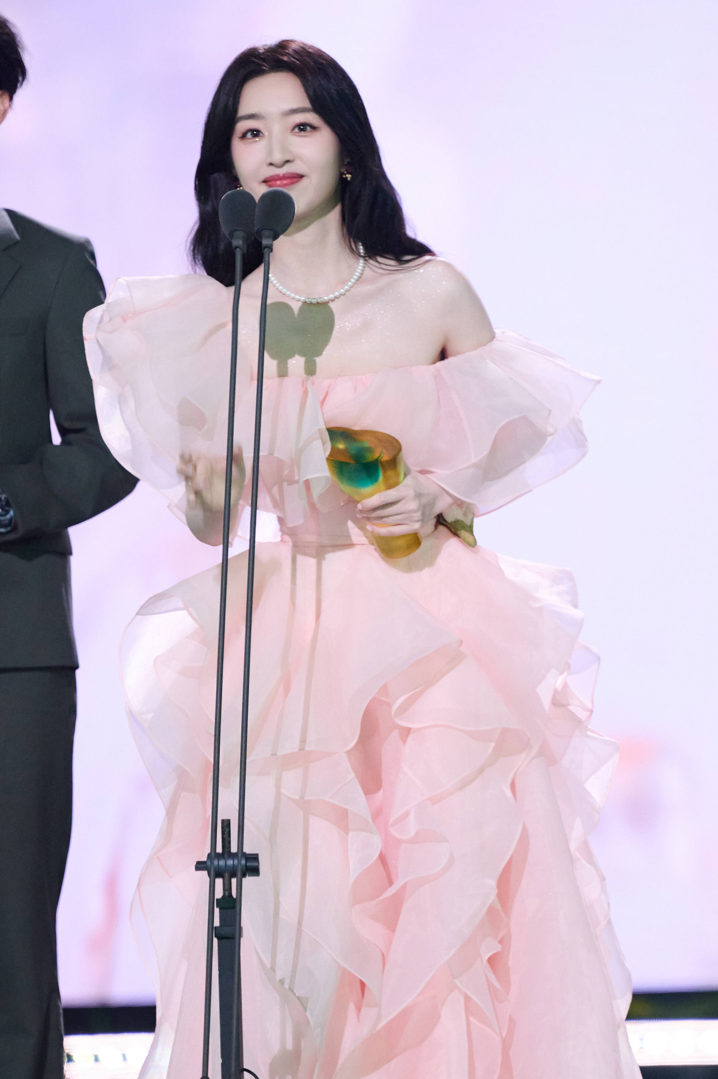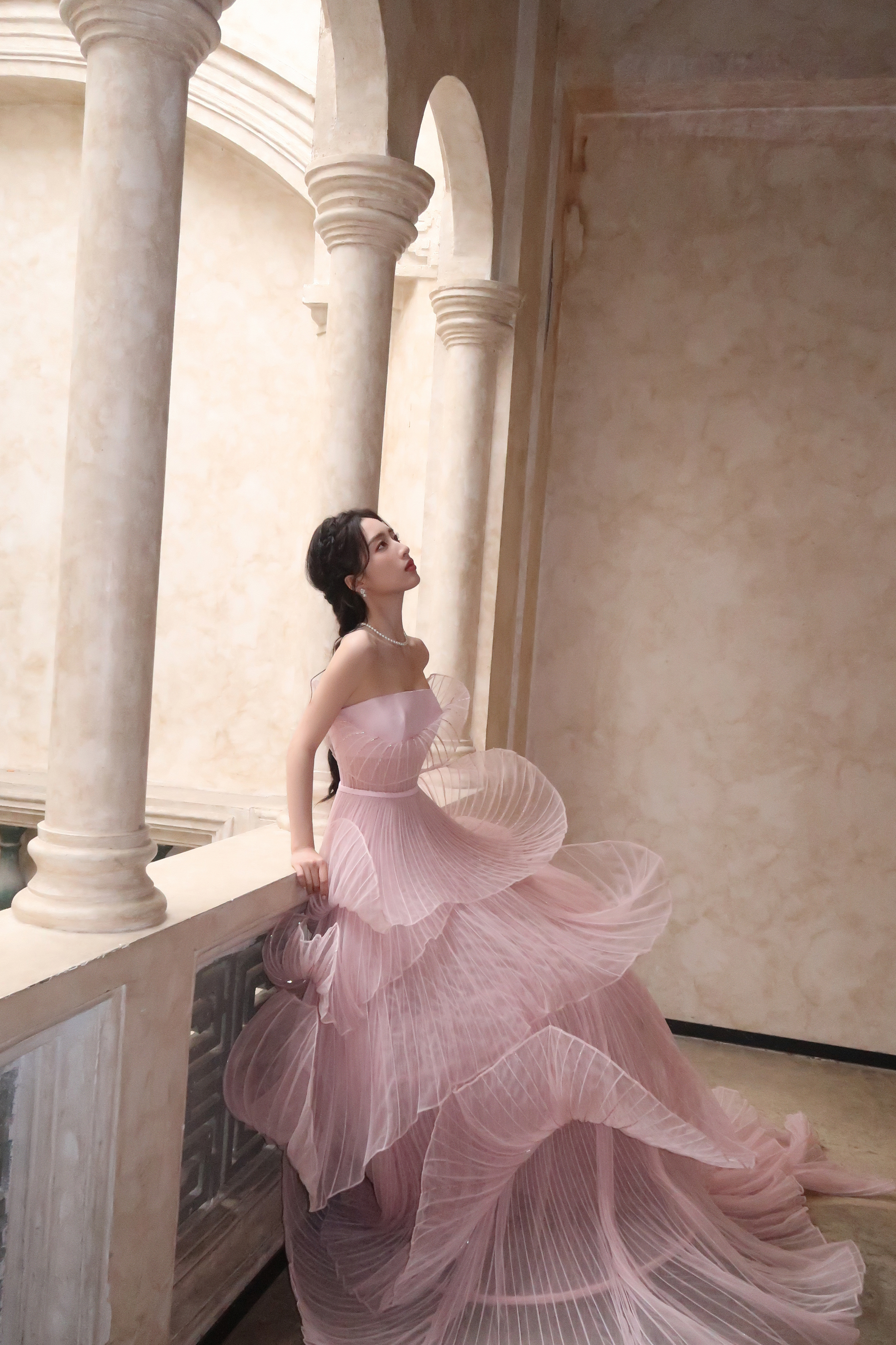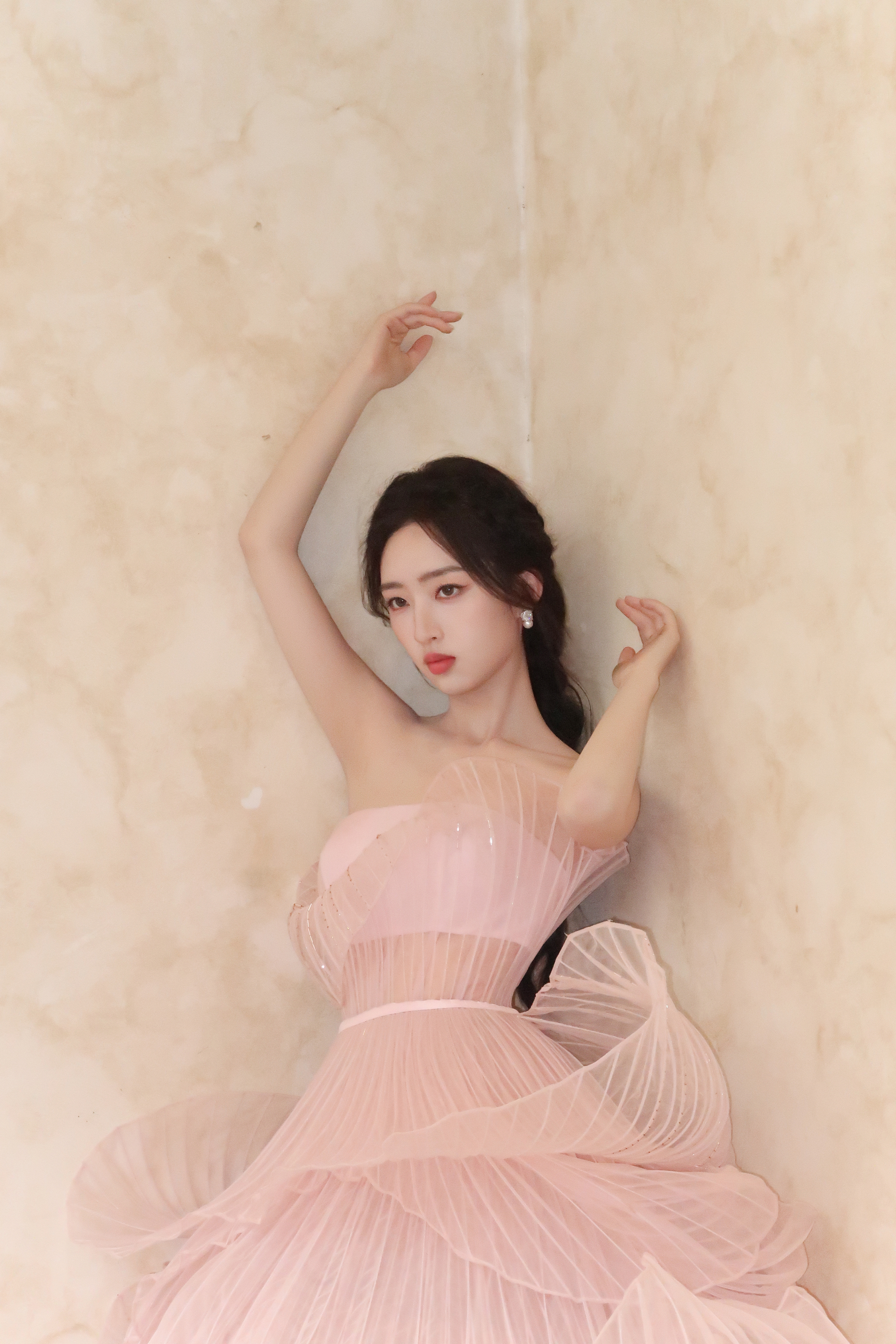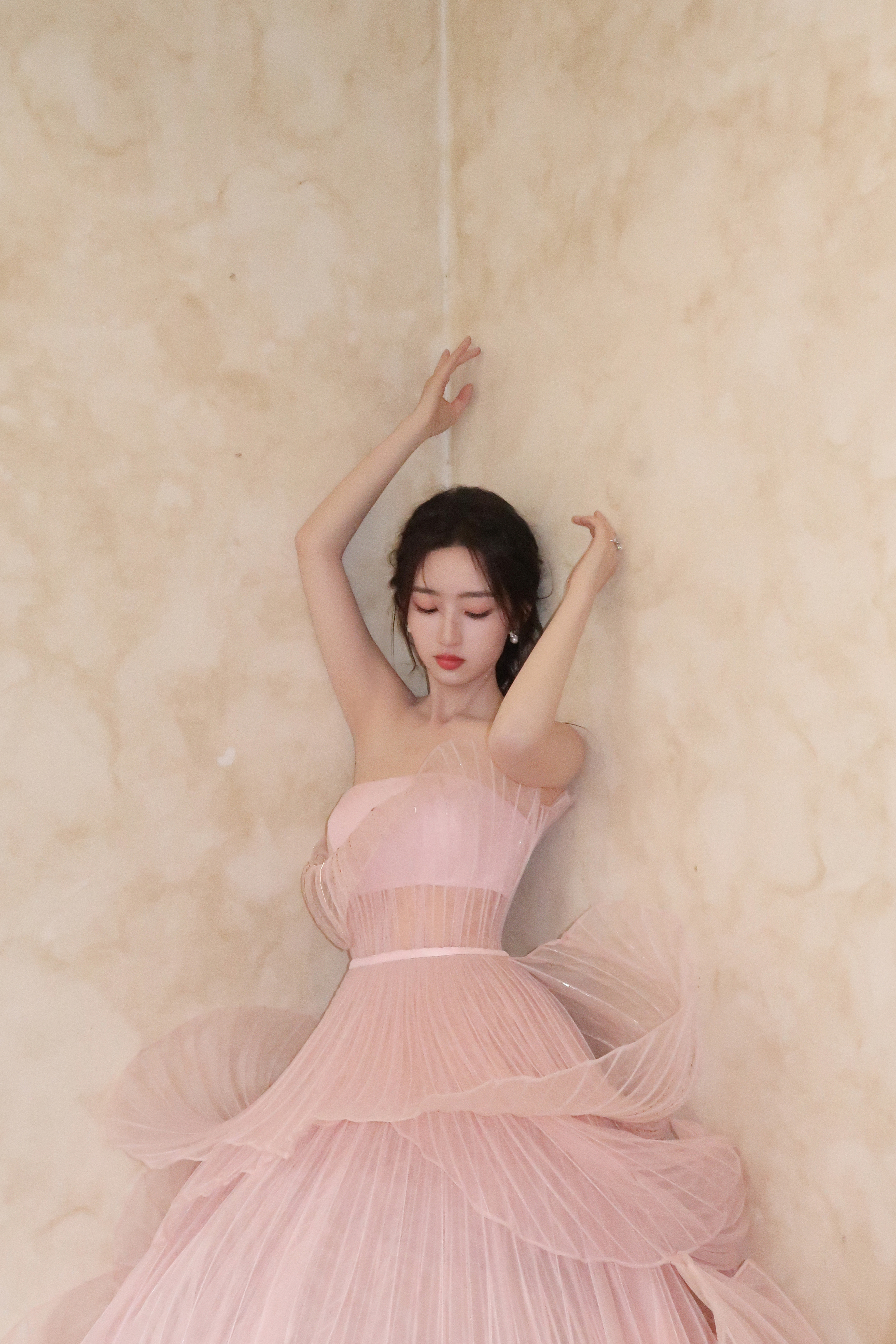 邓恩熙 粉纱曳地,裙摆漾开温柔弧度,眉眼间藏着清甜笑意,是坠入凡间的粉色绮梦呀✨
