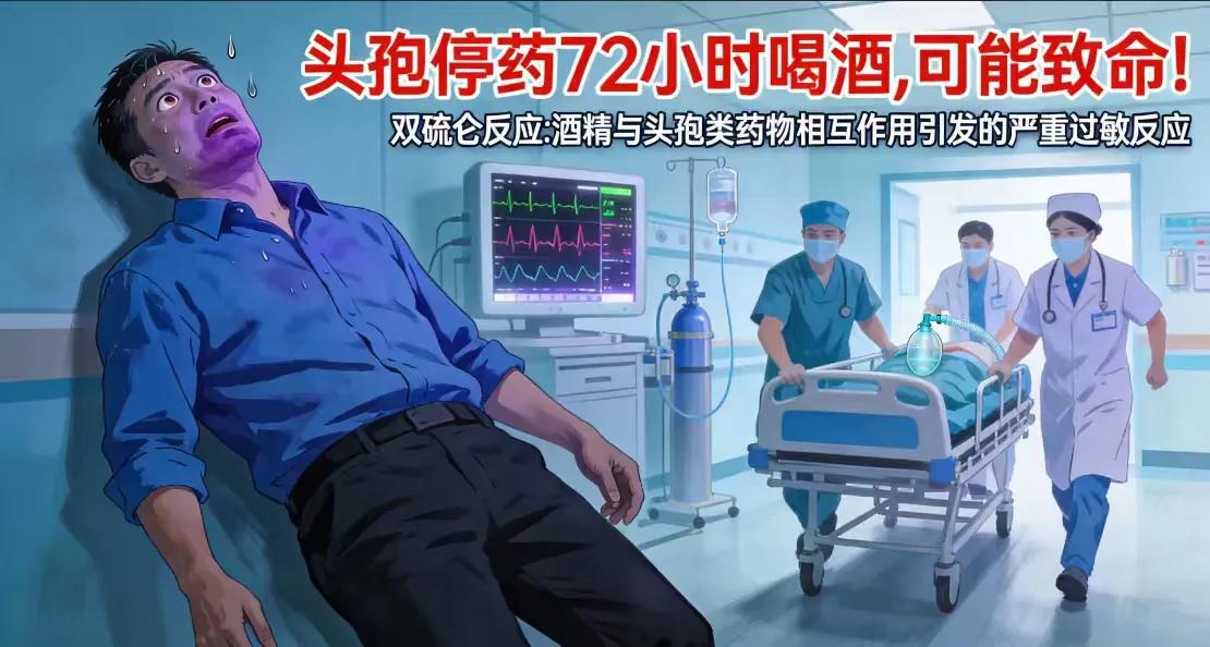 以为停药72小时就安全?男子冒险喝酒后休克入院 医用酒精棉球划过皮肤,病床上的陈明艰难地呼吸着,他绝不会想到,三天前停止服用头孢,仍然差点要了他的命。 南京市第一医院急诊科最近收治了一名紧急患者,32岁的陈明因呼吸困难、血压骤降被送往抢救。经诊断,这是典型的“双硫仑样反应”——服用头孢类抗生素后饮酒引发的严重中毒反应。 令人不解的是,陈明坚称自己已停药72小时,“安全期”后才饮下两杯啤酒。 01 生死72小时 陈明患有上呼吸道感染,医生开具了头孢克肟,医嘱明确标注“用药期间及停药后7天内禁止饮酒”。陈明服用了五天抗生素后症状好转。 三天后参加朋友聚会,他自认已过“三天安全期”,在朋友怂恿下喝了两杯啤酒。二十分钟后,他突感面部潮红、头痛、呼吸困难,随即倒地休克。 “患者送来时已出现严重低血压、意识模糊。”主治医生王医生回忆道,“这是典型的双硫仑样反应,再晚点可能有生命危险。” 02 危险的化学反应 头孢类抗生素与酒精在人体内“相遇”时,会引发危险的双硫仑样反应。其原理是抗生素抑制了人体代谢酒精所需的乙醛脱氢酶。 这导致酒精代谢产物乙醛在体内迅速蓄积,引发中毒反应。症状包括面部潮红、头痛、恶心呕吐、呼吸困难,严重时可致休克甚至死亡。 南京市第一医院药剂科主任李伟强调,头孢与酒精的危险“相遇期”远不止用药期间。 “药物在体内完全清除需要时间,不同头孢类药物的代谢周期从数小时到数天不等。” 03 被误解的安全期 “停药三天就能喝酒”是普遍存在的危险误解。实际上,药物代谢存在个体差异,取决于年龄、肝肾功能等多种因素。 医学研究表明,多数头孢类药物需要至少5-7天才能从体内完全清除。头孢曲松等长效抗生素甚至在停药一周后仍可能引发反应。 南京市疾控中心去年统计显示,因抗生素与酒精相互作用引发的急诊病例中,超过40%发生在停药3-7天内。 “患者往往以为停药即安全,这是最大的误区。”李伟主任强调。 04 不只是头孢的禁忌 除了头孢类抗生素,还有许多药物与酒精存在危险相互作用。硝基咪唑类抗菌药如甲硝唑、替硝唑会引起类似反应。 降糖药与酒精同服可导致严重低血糖;降压药与酒精叠加会使血压骤降;安眠药与酒精同时使用可能抑制呼吸中枢。 值得注意的是,不仅饮用酒类有风险。含有酒精成分的药物、食品甚至外用酒精都可能引发反应,如藿香正气水、酒心巧克力、酒精消毒等。 南京多家医院急诊科数据显示,节假日期间,类似陈明这样的病例明显增加。病床上,刚脱离危险的陈明心有余悸:“我以为三天够长了,差点为两杯啤酒送了命。” 急诊科主任最后提醒,服用任何药物都应仔细阅读说明书,用药前后至少一周内绝对禁酒,这不仅是医嘱,更是对自己生命的负责。酒后致死 酒醉致死 喝酒后能睡觉 喝酒脑梗 酒醉死了 啤酒中毒 喝酒后身体反应