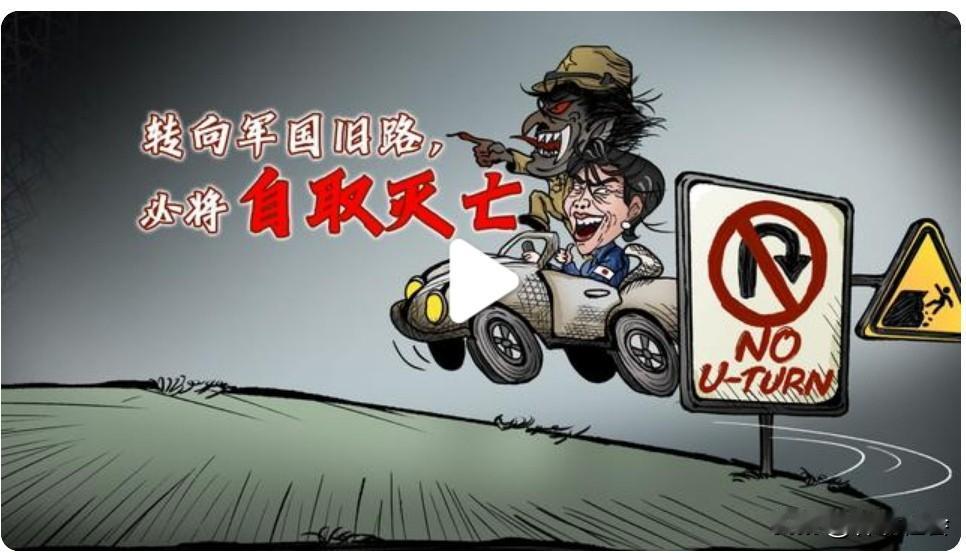 这幅漫画形容的太贴切了!在标注有“禁止掉头”的路口,都是历史用无数惨痛代价立下的警示牌。谁不听劝阻,谁开历史倒车,谁就是自取灭亡。 世界人民应该明明白白的告诉日本帝国主义:二战胜利后的国际秩序不可逆,人民追求自由、民主、公平道路也不可逆。 违背历史规律,日本帝国主义开历史倒车,在“禁止掉头”的路口掉头执意掉头,必将自取灭亡!