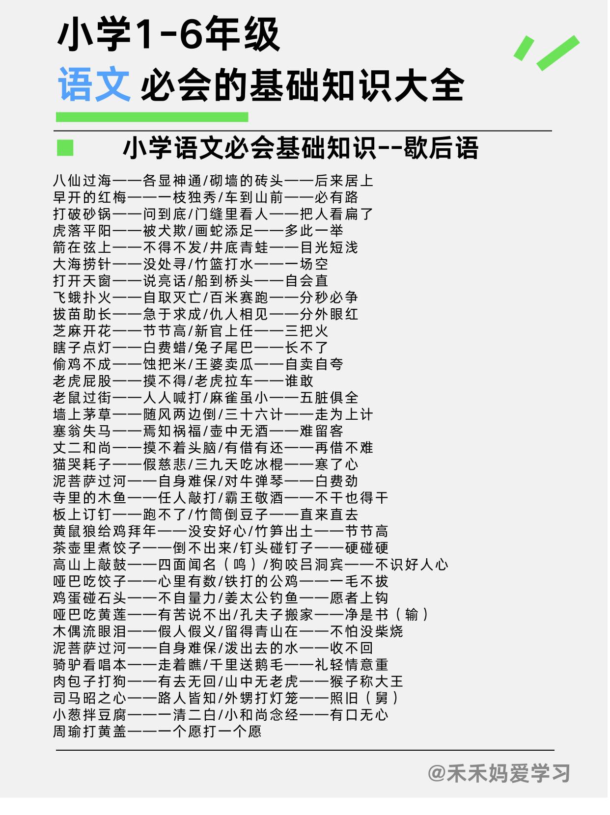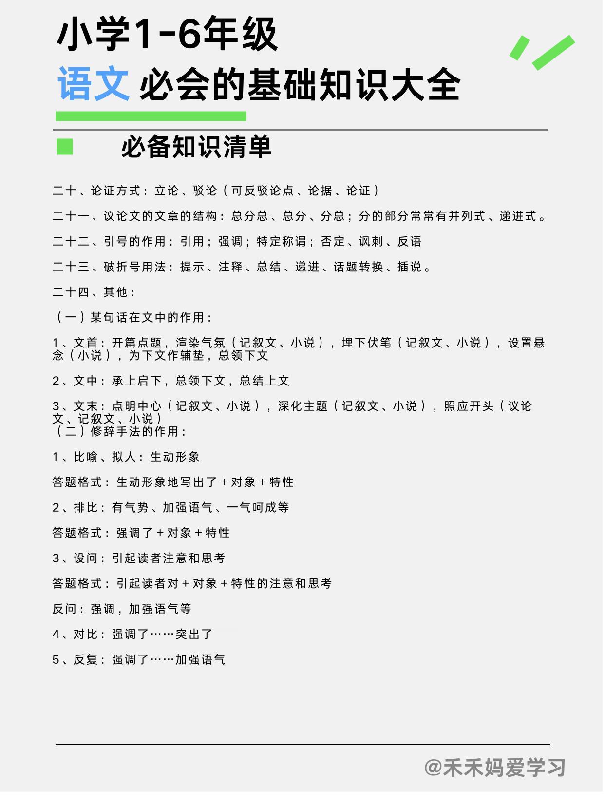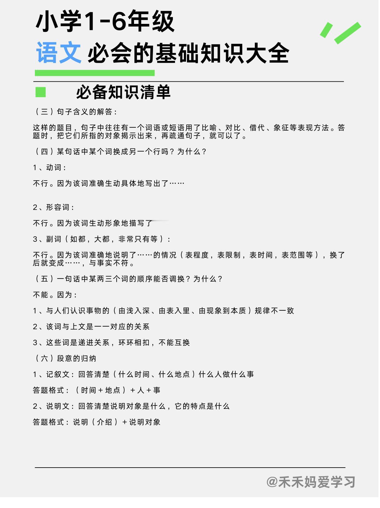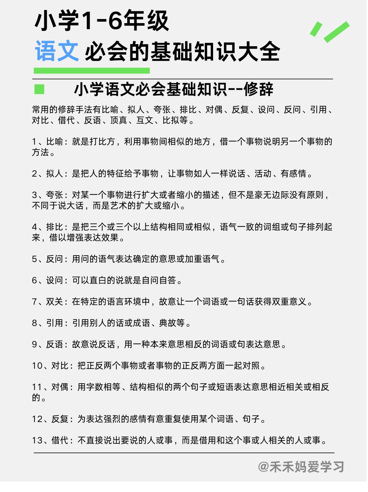 语文是一门大科,占分比重很大,但很多家长,尤其是小学家长,都不重视孩子的语文学习,认为它只是简单的识字、背诵和朗读。 却不知,小学语文6年需要掌握的绝非识字和背诵那么简单,背后所学知识点远超我们的想象。 父母若不加以重视,孩子语文基础打不好,到了高年级再提升就非常难了,分享一份1-6年级小学语文教材的核心知识点,希望各位家有小学生的父母可以收藏起来,最好打印出来贴在孩子书桌旁,对孩子打语文基础可起到非常重要的作用。