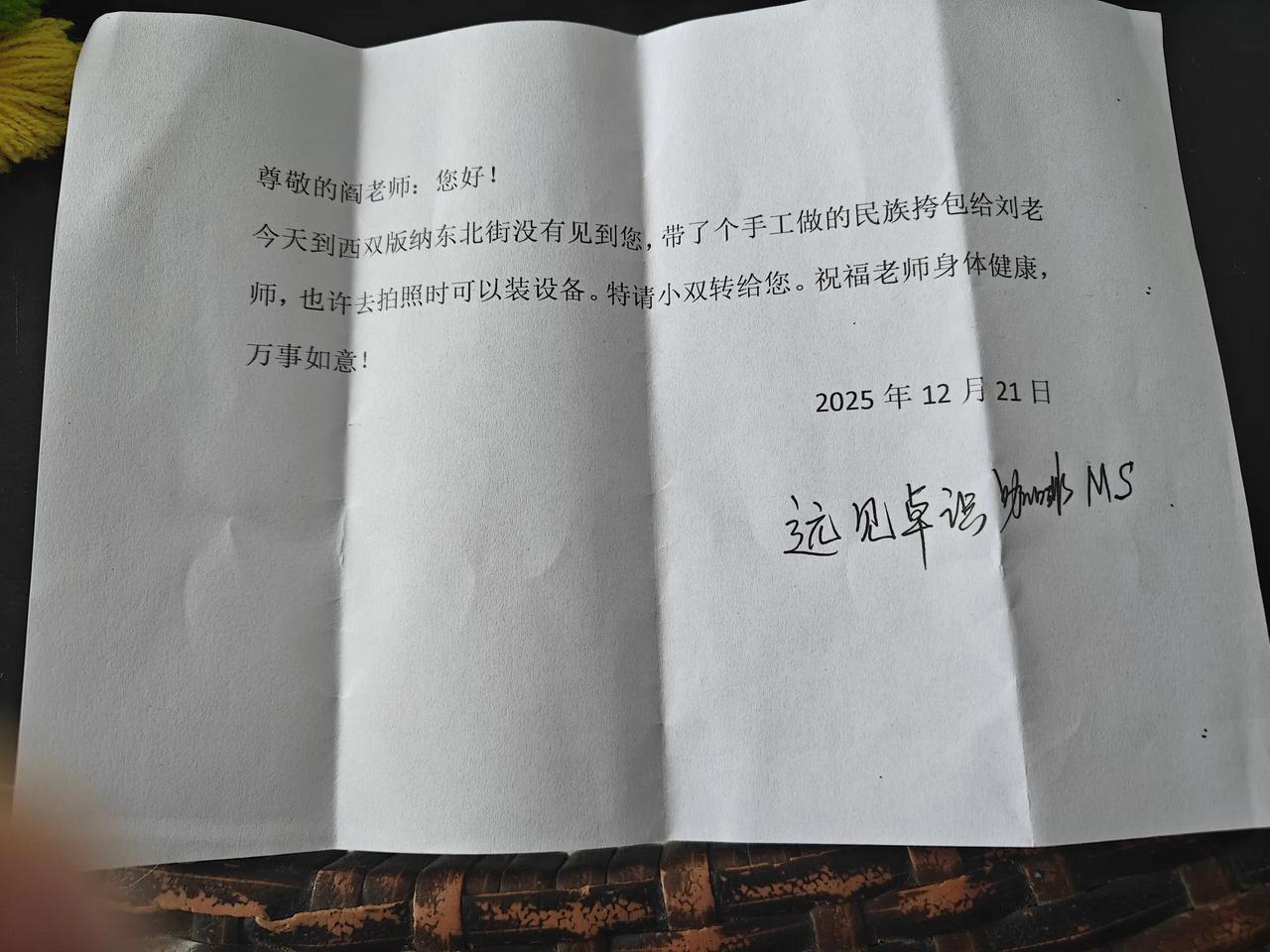 感谢神秘粉丝千里迢迢来看克非大哥 前天下午又有粉丝不远千里来西双版纳景洪东北街过来看克非大哥。 前天下午,我正在家会客,东北街卖菠萝蜜大侄子小双来电话: “收(叔)啊,你的粉丝过来了,你跟她说几句话。” “你好你好,哎呀,非常感谢!” “阎老师您好,我到了东北街,走不远就看到小峰跟小双了,我走到他们跟前,我说,你是小峰吗?他说,是啊,我说我是你叔的粉丝。” “一下就认出来了吗?” “阎老师,跟您描述的二样不差,照片也不是P的,一眼就看到小双了,是漂亮。” “不好意思,我寓所距离东北街4公里,现在家里有客人,你在版纳住几天?我怎么也应该找你吃个饭。” “阎老师,不用管我,我今天就走了。” “还有,我这次过来还有一个心愿,就是想拜访一下刘妈,她在我心中太伟大了,我是特意从广东过来的。阎老师,你笔下的刘妈,我见到小峰,小双,放心了,刘妈也跟他俩一样,笔下跟真人也会一模一样。我特意给刘妈带过来一个小包,礼轻情意重,我想通过这个小包表达我对刘妈的敬意。” “刘妈跟小区老太太们去曼听公园拍照去了,在家我一定让她去看看你。” 就这样,我说,小峰你给收(叔)粉丝拍个照片。 昨天晚上,大侄子小峰过来,把粉丝给的包,还有茶叶拿了过来。 我翻看了这两天头条,我的段子里评论区,没见到粉丝留言。 我只好在这里,说一句,感谢了!欢迎下次再过来,提前发私信给我。