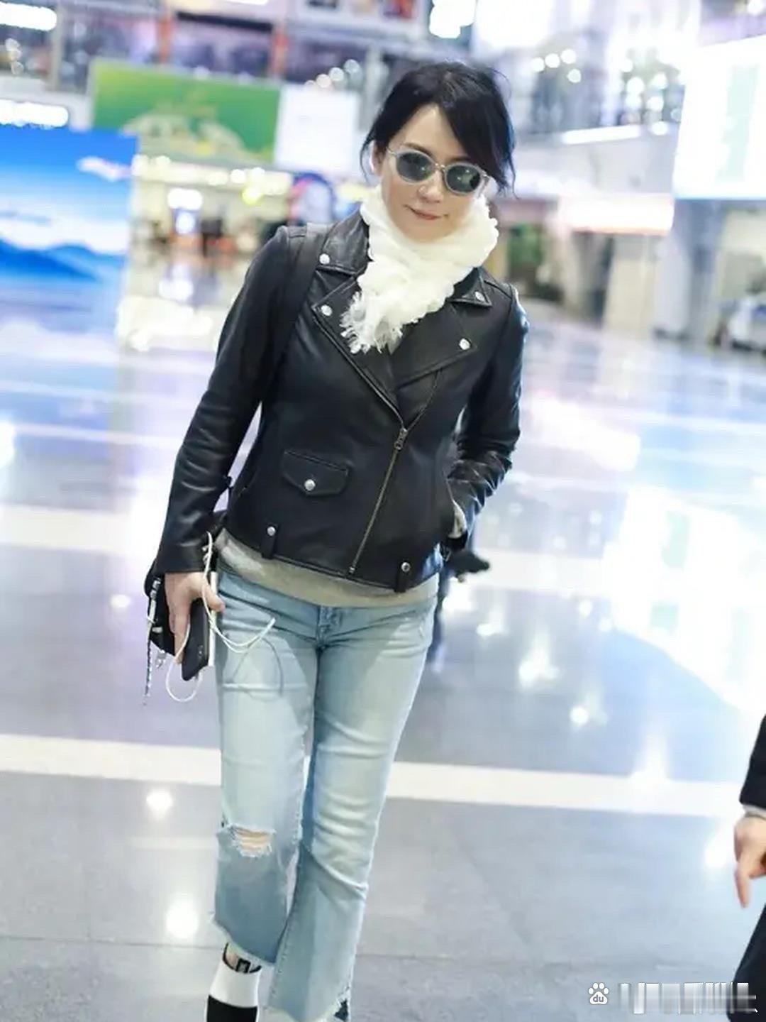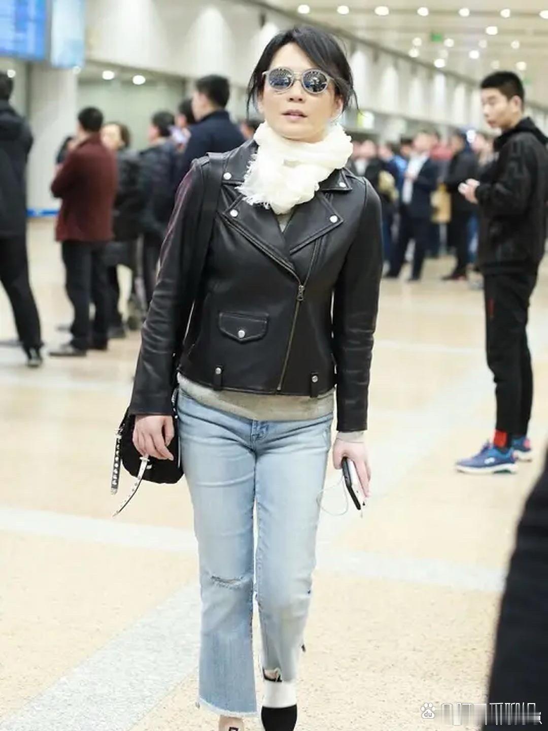 俞飞鸿穿皮衣也太飒了吧!黑色皮衣+牛仔裤的经典组合,在她身上显得既随性又高级,这独特的清冷气质真的太绝了,完全看不出岁月的痕迹!
