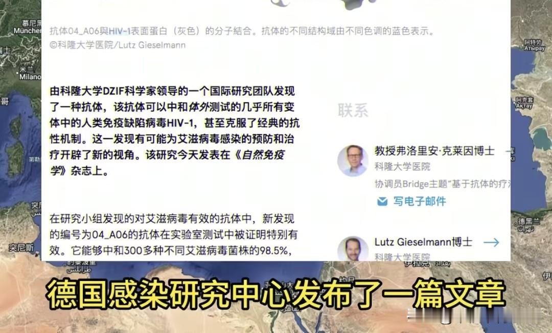 非洲出现艾滋病超强的广谱抗体! 12月21日,德国一个研究中心发布了个大新闻