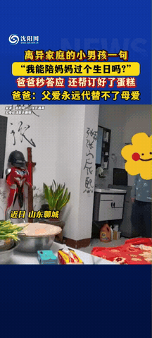 懂事得让人心疼! 山东聊城,一对夫妻离异后,男孩跟着父亲一起生活,妈妈生日那天,他问父亲,我能不能去找妈妈一起过生日?父亲说可以。男孩接着又说,我能不能拿我的压岁钱,你帮我去订一生日蛋糕?父亲也很爽快的答应了。网友,懂事得让人心疼。 后来,这位父亲说:“虽然我们分开了,但孩子是无辜的。父爱不能代替母爱,母爱也不能代替父爱。” 父母给孩子的爱,不能因为分手,而阻止孩子见任何一方。这背后是父亲的包容和格局。 守护孩子的爱,是离异后父母最好的担当。男孩虽然生活在不完整的家庭,但父母的爱却是完整的。父母能多包容多理解,孩子一样能生活得阳光,善良,懂感恩。