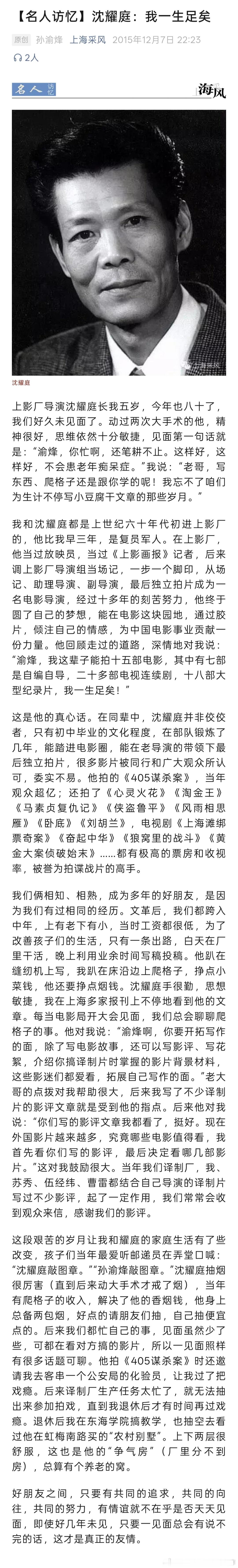 啊沈耀庭导演去世了!非常喜欢的一位导演!他是电影放映员出身,然后从剧组各种杂活干