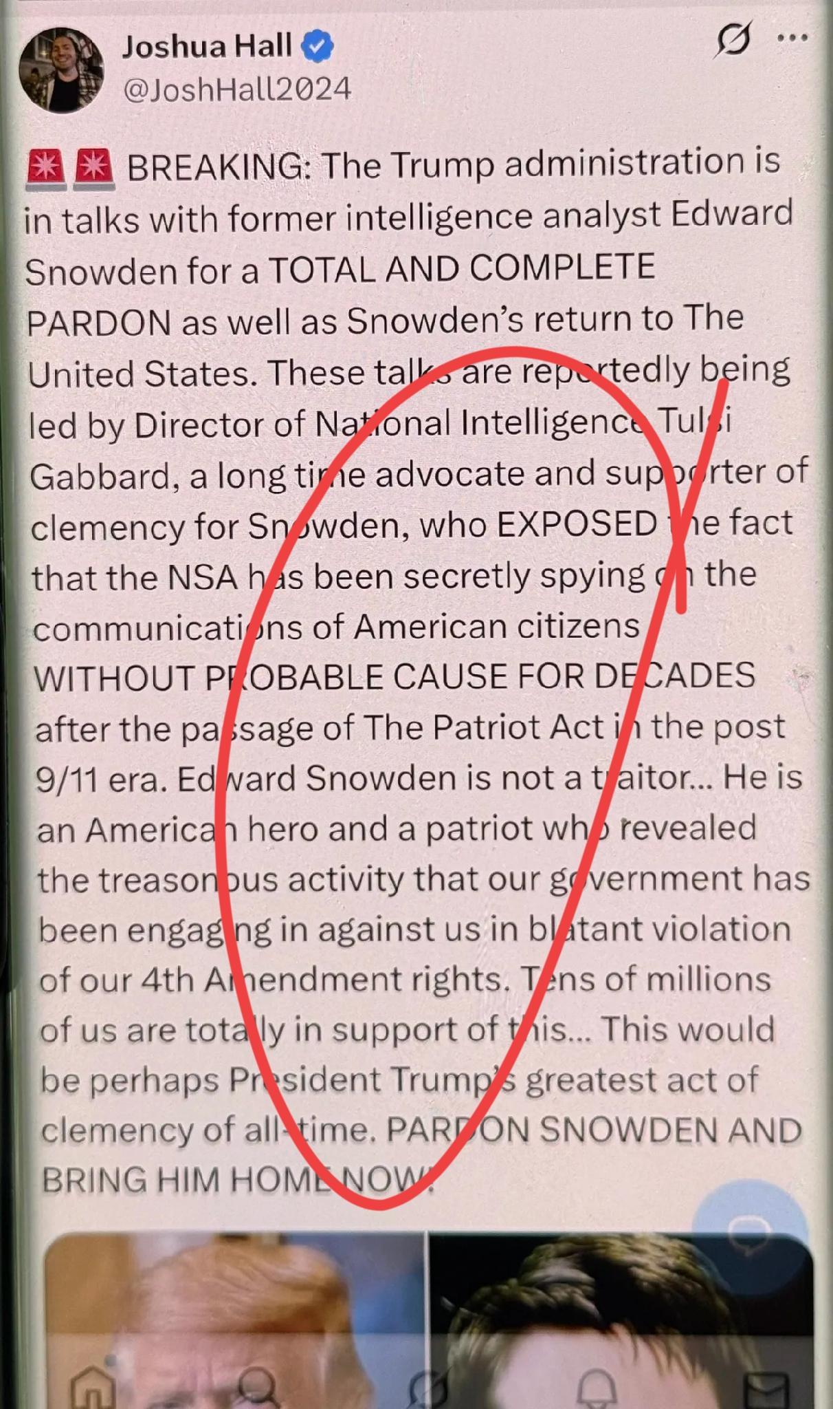 特朗普政府秘密接触斯诺登,赦免令引发国内撕裂,新证据浮出水面。 最近消息说特朗普政府正在秘密谈判要赦免斯诺登,让他回美国。牵头的是国家情报局长加巴德,据说他一直挺斯诺登。斯诺登当年曝光美国监听公民的事,让很多人对他又恨又敬,现在数千万人在网上喊"接他回家"。 这事背后藏着好多争议。有人觉得特朗普这是为了拉年轻选民的票,毕竟最近他老提"透明化改革"。有意思的是,最近有传言说斯诺登那边新公布了更多证据,可能涉及到美国政府偷偷收集人脸和声音数据的事。 五角大楼那边也不太淡定,悄悄在评估斯诺登手里还有啥料。俄罗斯那边几年前的档案也被翻出来,说是当年斯诺登差点去了欧洲。现在网上天天在吵这事对不对,但美国政府始终没正式承认谈得怎么样了。