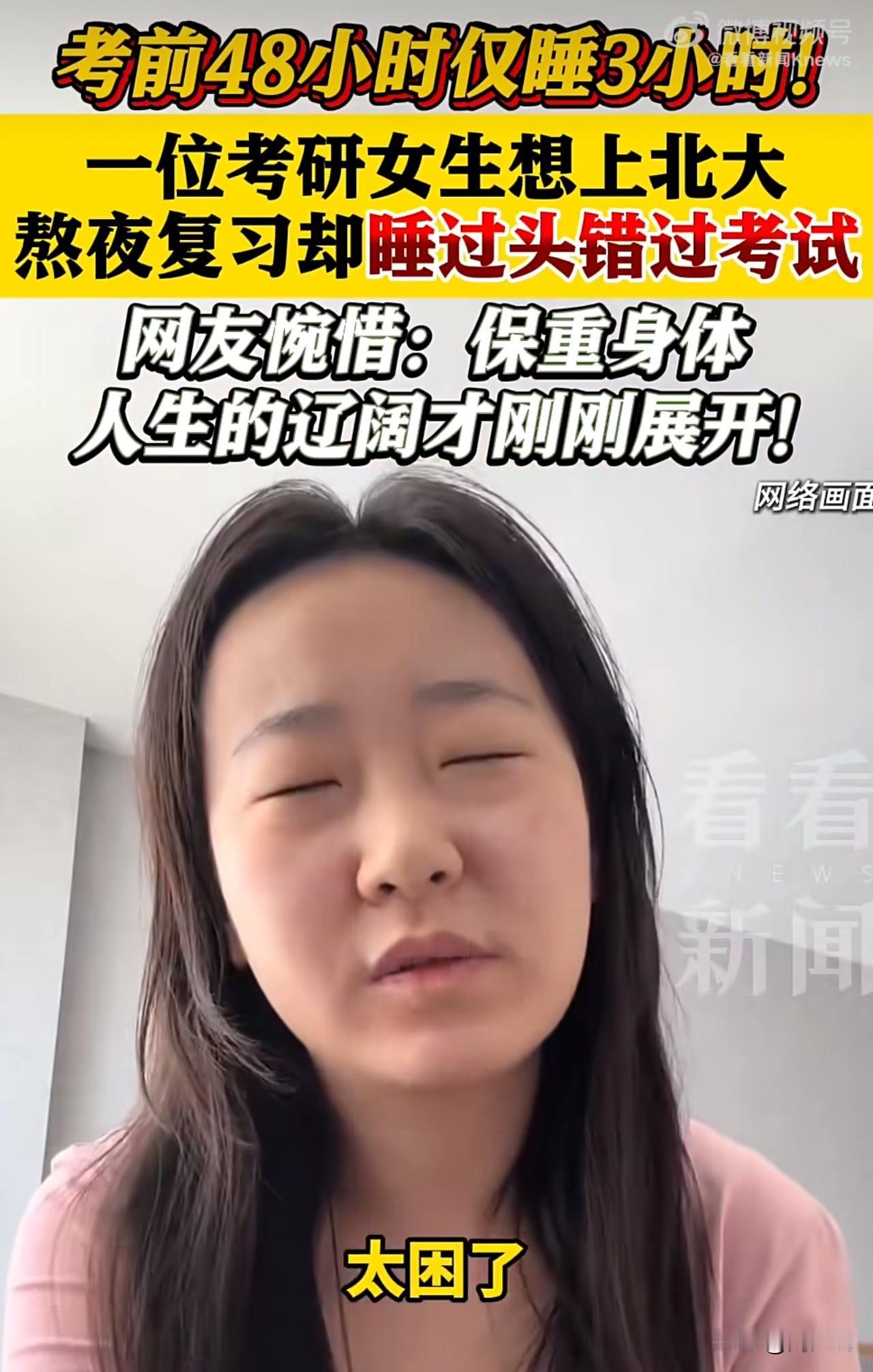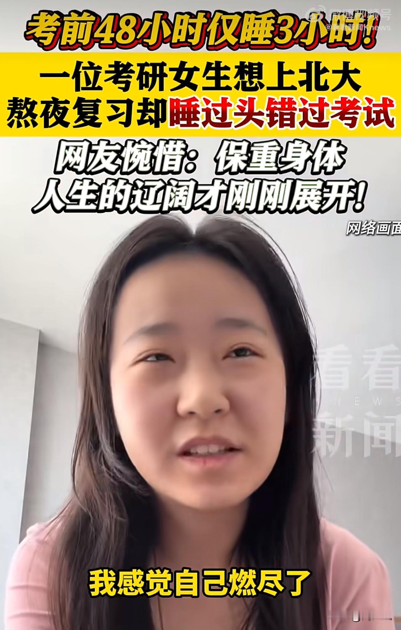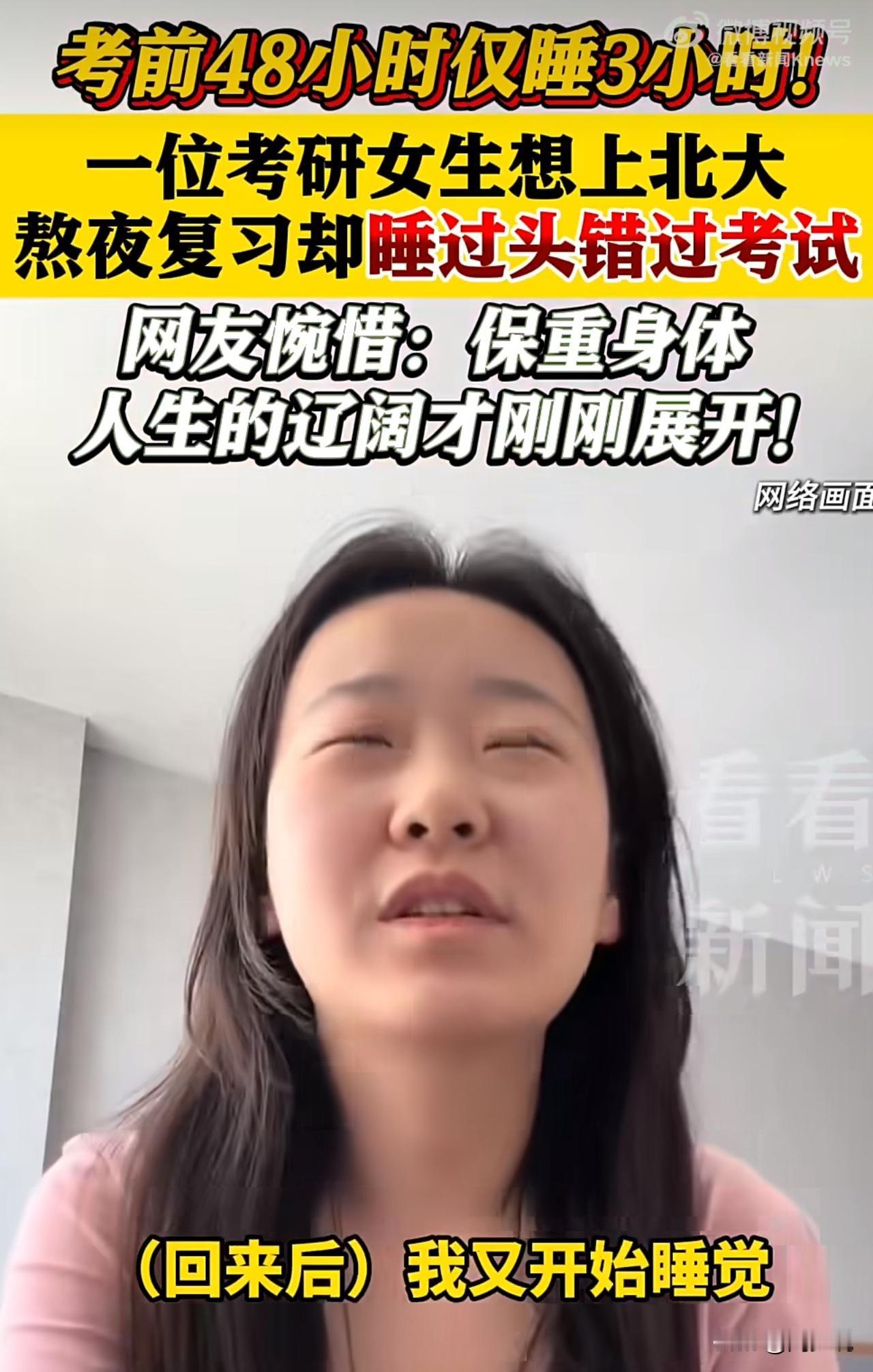 “太遗憾了!”考研首日结束,一位将北大视为梦想的女生自觉发挥不错,为冲刺次日科目,她熬夜复习到凌晨五点。尽管连设五六个闹钟,没想到依然睡过,直到上午九点多被酒店保洁开门声惊醒!事后她在视频中坦言,连“考上后”的推文都提前写好了。此事引发无数网友替她惋惜! 有人说:“身体在用沉睡发出警告,你拼尽全力的样子已足够优秀!” 也有人心疼:她是真的太想赢了,只是用力过猛,忘了给身体留一点余地。 这场遗憾背后,周少认为是当下许多学子“以时间换分数”的缩影。拼搏精神固然可贵,但透支身体反而可能让努力功亏一篑。 真正的备考智慧,在于张弛有度的规划、对身心信号的倾听。她的经历犹如一记警钟:追梦路上,效率远比熬夜更重要,健康才是持续奋斗的基石。 此事也希望所有考生懂得在坚持和休息之间找到平衡。考研重要,但不是人生的全部;目标值得拼,但不值得拿健康去赌。#寻美三湘# #长沙新朋友#
