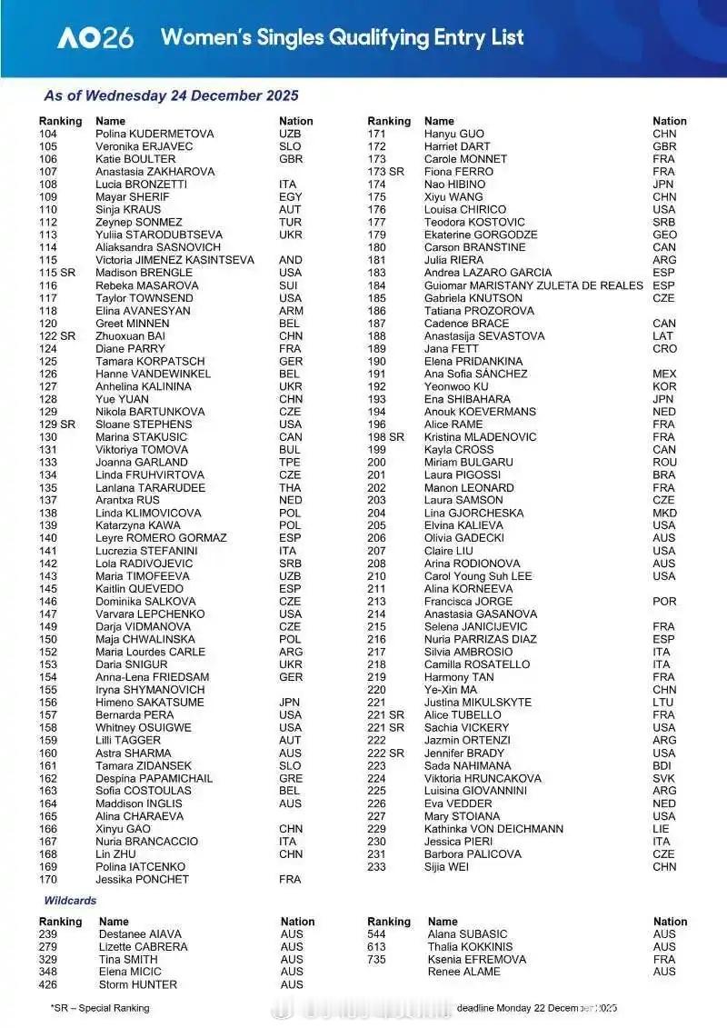 小花小草资讯【澳网202】中国球员资格赛名单女单:8人入围袁悦🇨🇳朱琳🇨🇳白卓璇🇨🇳(SR)高馨妤🇨🇳王曦雨🇨🇳郭涵煜🇨🇳马烨欣🇨🇳韦思佳🇨🇳(最后一个入围)