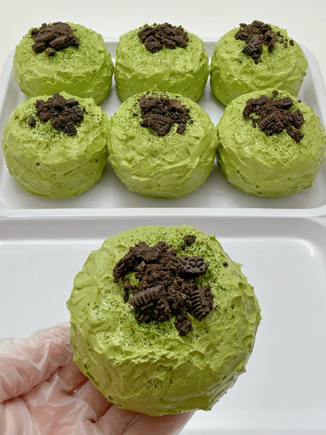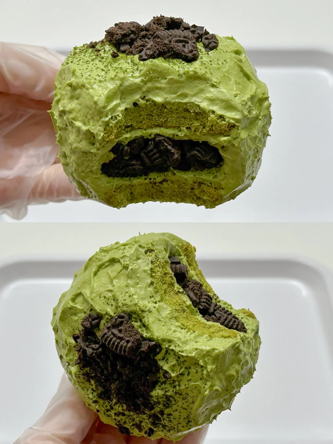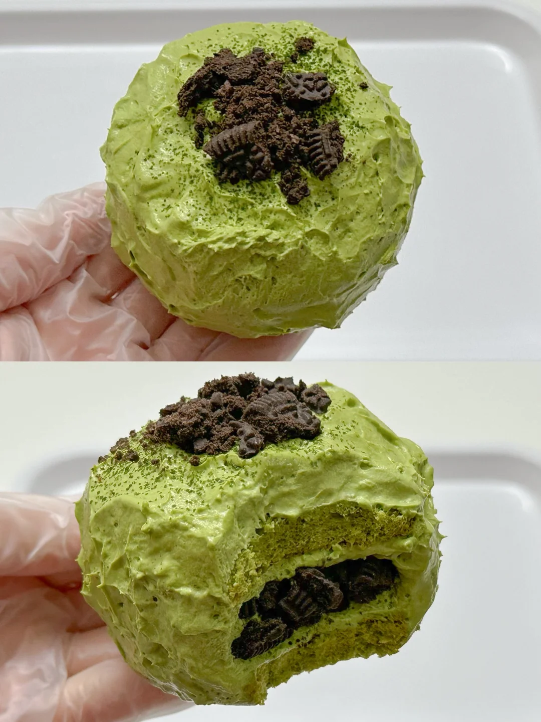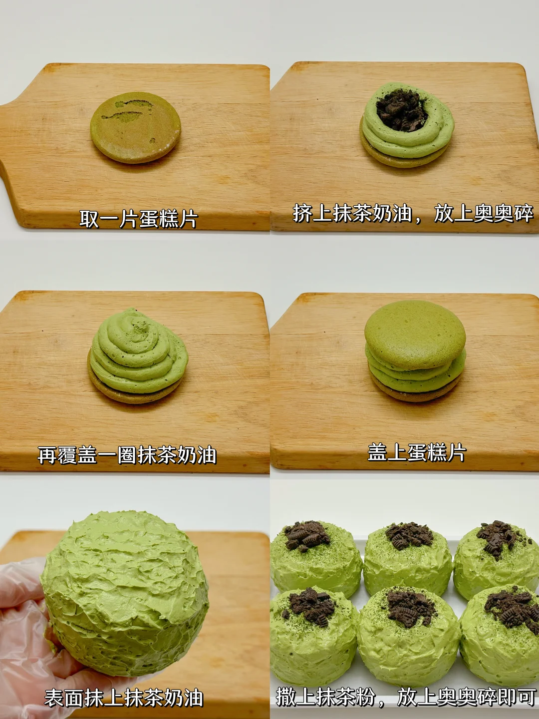 抹茶脑袋一定要试试这个抹茶奥利奥奶贝😋 松软的蛋糕🍰➕绵密的抹茶奶油➕酥脆的奥利奥 一口下去多重口感,微苦带甜,茶香四溢[色色R] 奶fufu的巨好吃~ 做法简单,赶紧都去做~💕 🌈食材: 蛋糕胚: 玉米油20g 抹茶粉5g 牛奶30g 低筋面粉35g 鸡蛋2个 白糖25g 柠檬汁适量 抹茶酱: 淡奶油100g 抹茶粉15g 抹茶奶油: 淡奶油300g 白糖30g 抹茶酱 🌈做法: 1️⃣玉米油加抹茶粉搅匀,加入牛奶搅拌至乳化,筛入低筋面粉搅拌至无干粉,加鸡蛋2个搅拌顺滑。 2️⃣蛋清加柠檬汁和白糖打发提起有小尖角状态,取1/2蛋白至蛋黄糊中拌匀,再倒回至剩余蛋白糊中翻拌均匀,挤入烤盘中,烤箱提前预热,烤箱150度30分钟,烤好放凉备用。 3️⃣淡奶油加抹茶粉搅拌均匀;将抹茶酱倒入淡奶油中,加上白糖打发均匀备用。 4️⃣组装:蛋糕片+抹茶奶油+奥奥碎+抹茶奶油+蛋糕片,表面抹上抹茶奶油,顶部撒上抹茶粉,放上奥奥碎即可。